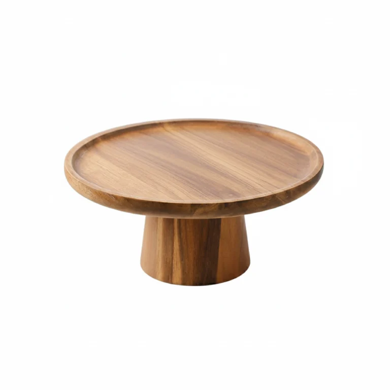 The Tabletop Serving Stand is a refined wooden pedestal designed to elevate everyday and celebratory serving. Featuring a broad, flat top balanced on a sculpted central base, it provides a stable and elegant platform for cakes, desserts, or artisanal bakes. Its minimal silhouette and warm wood grain allow the food to remain the focus, making it an effortless addition to dining tables, counters, and dessert displays. Versatile in use, this stand works equally well as a cake stand or a styled tabletop accent.