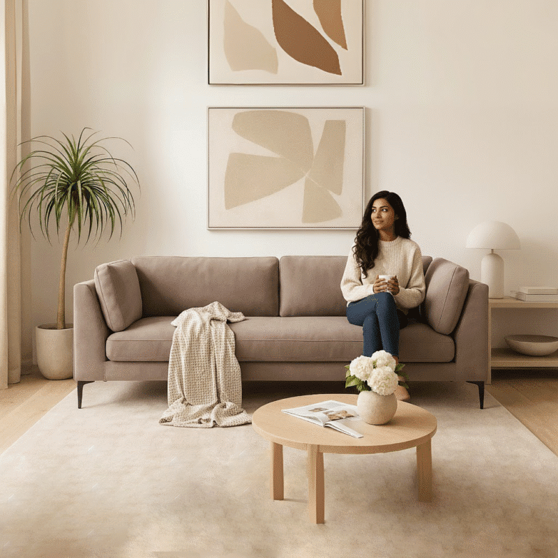 A perfect blend of mid-century charm and contemporary comfort, this 2-seater sofa brings structured style to any living space. The vertically channeled backrest, sleek armrests, and rich wooden base create a refined yet welcoming presence. Its compact size makes it ideal for apartments, reading nooks, or office lounges.