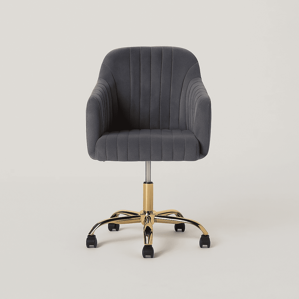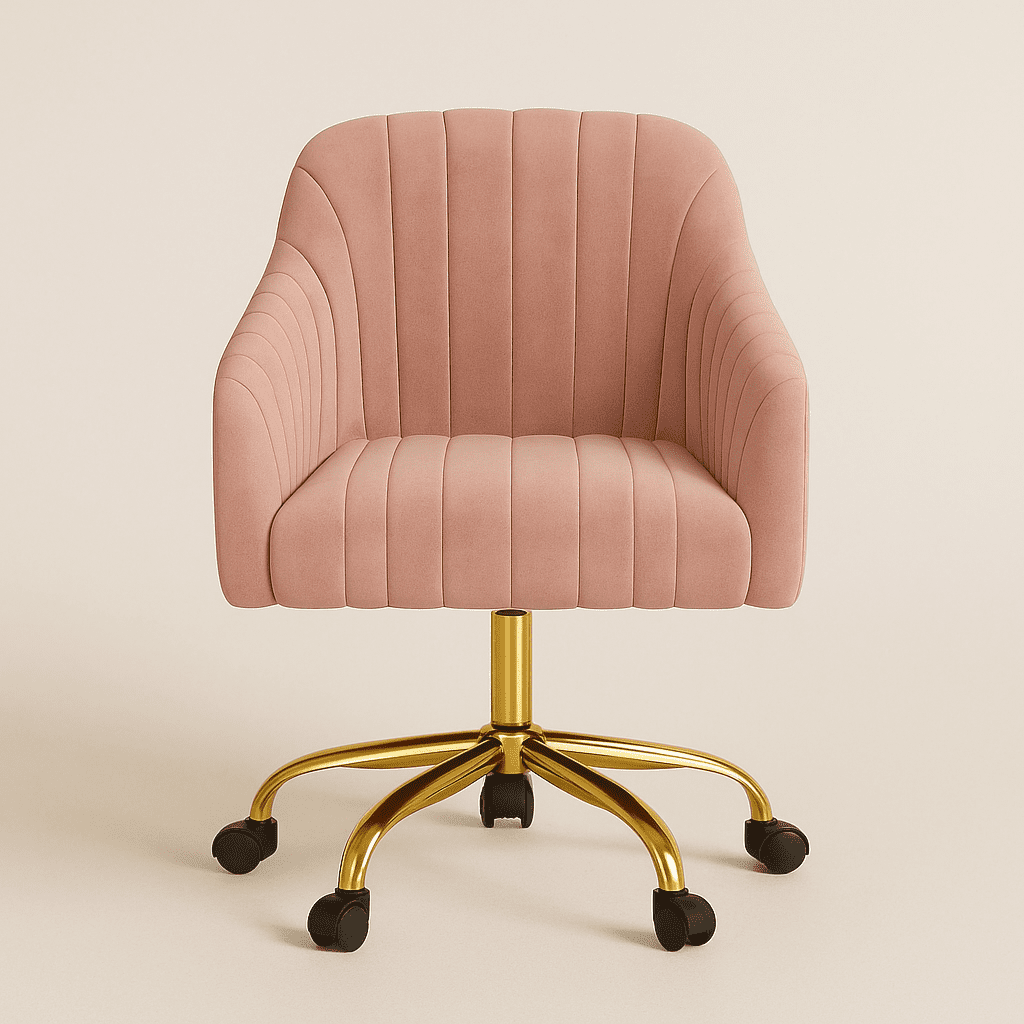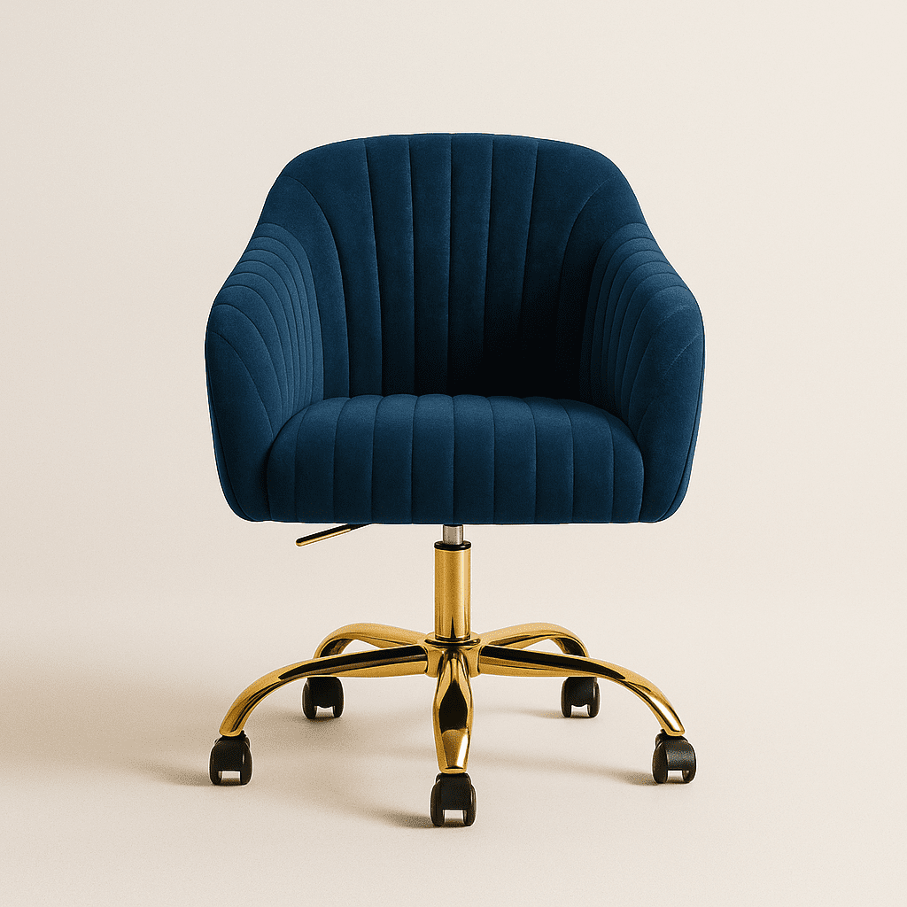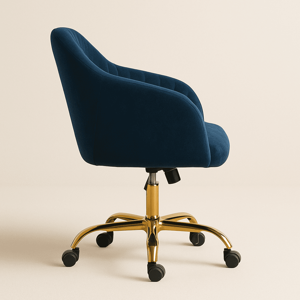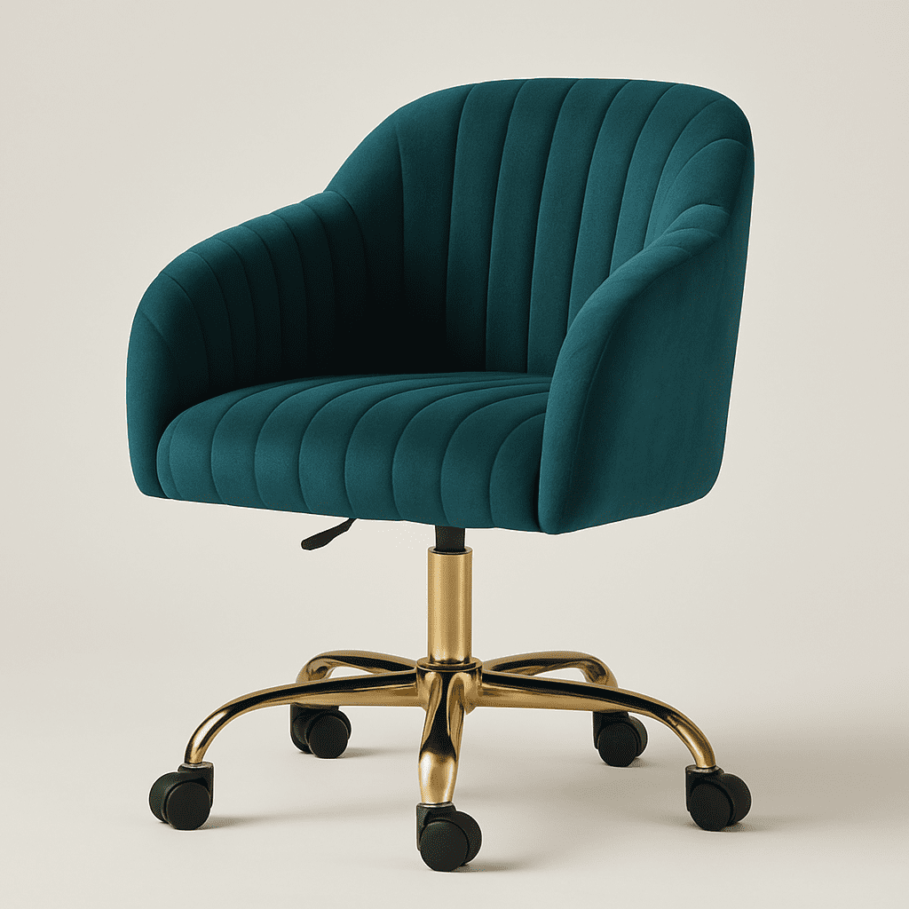 The Arvio Chair with wheels adds luxury to living rooms, bedrooms, dressing tables, or offices. Its plush velvet upholstery and ergonomic design offer comfort and style.