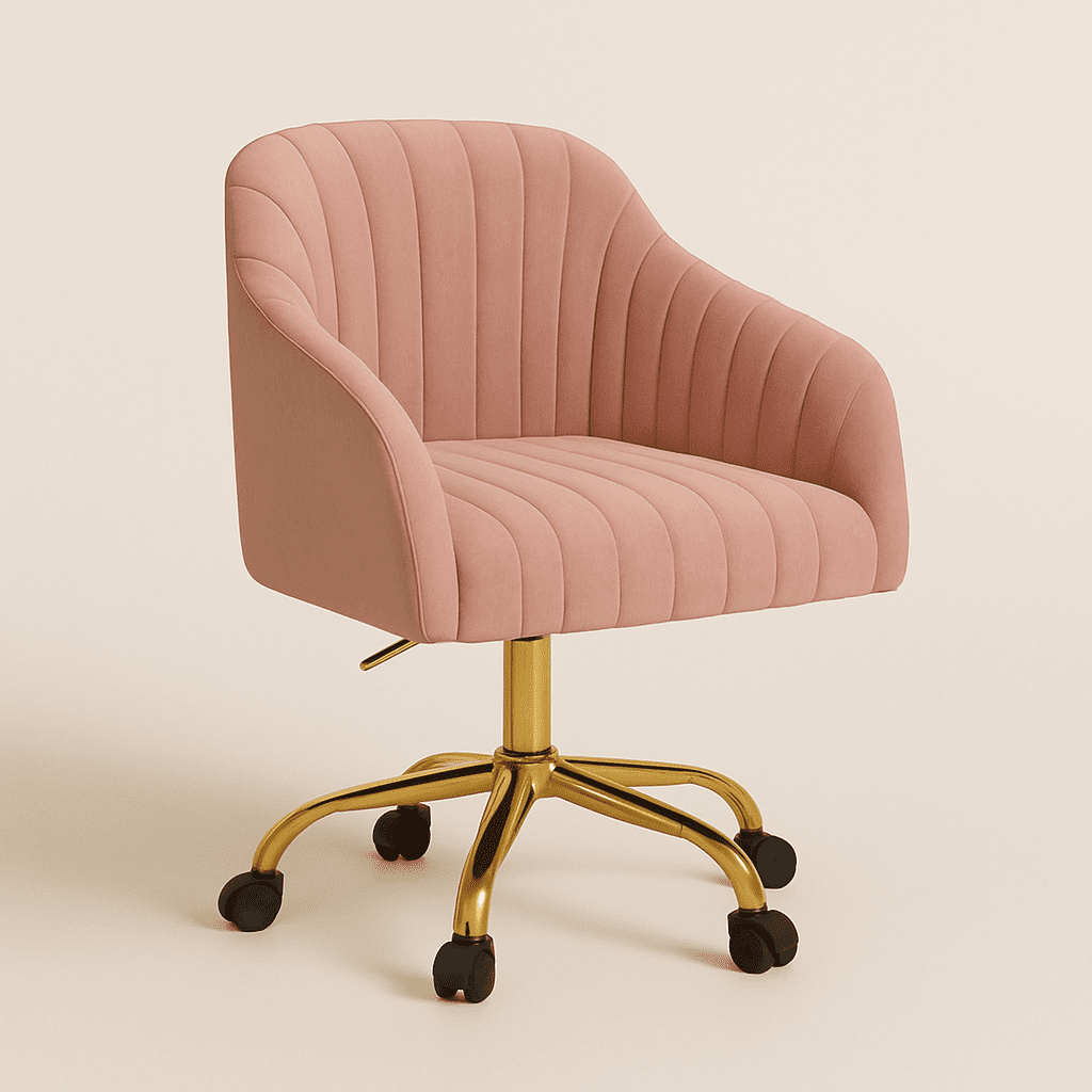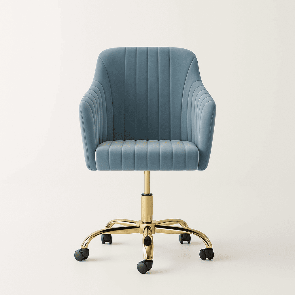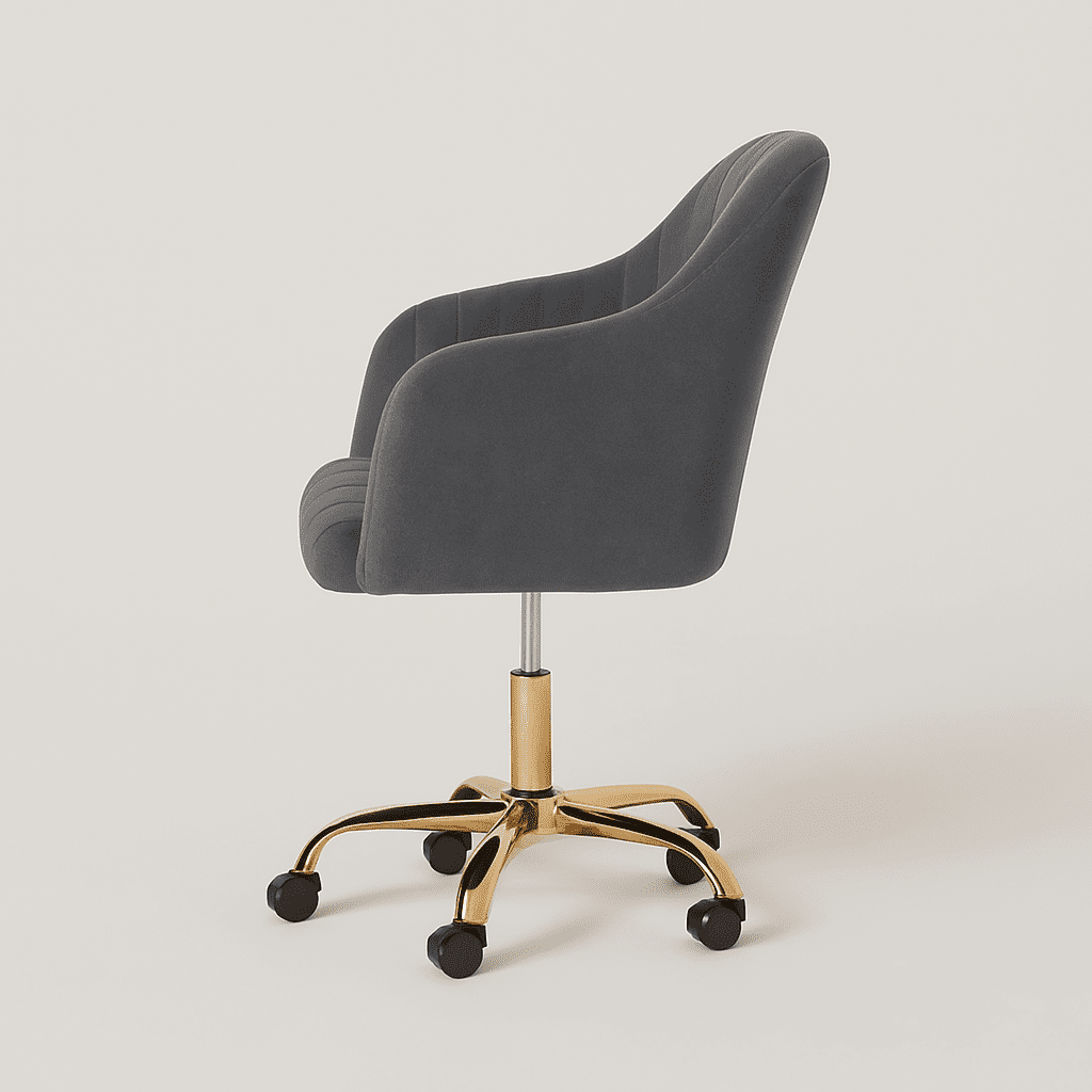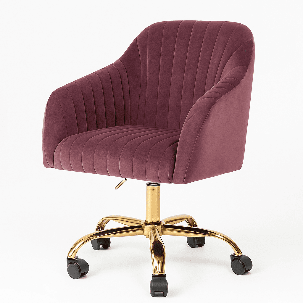 The Arvio Chair with wheels adds luxury to living rooms, bedrooms, dressing tables, or offices. Its plush velvet upholstery and ergonomic design offer comfort and style.