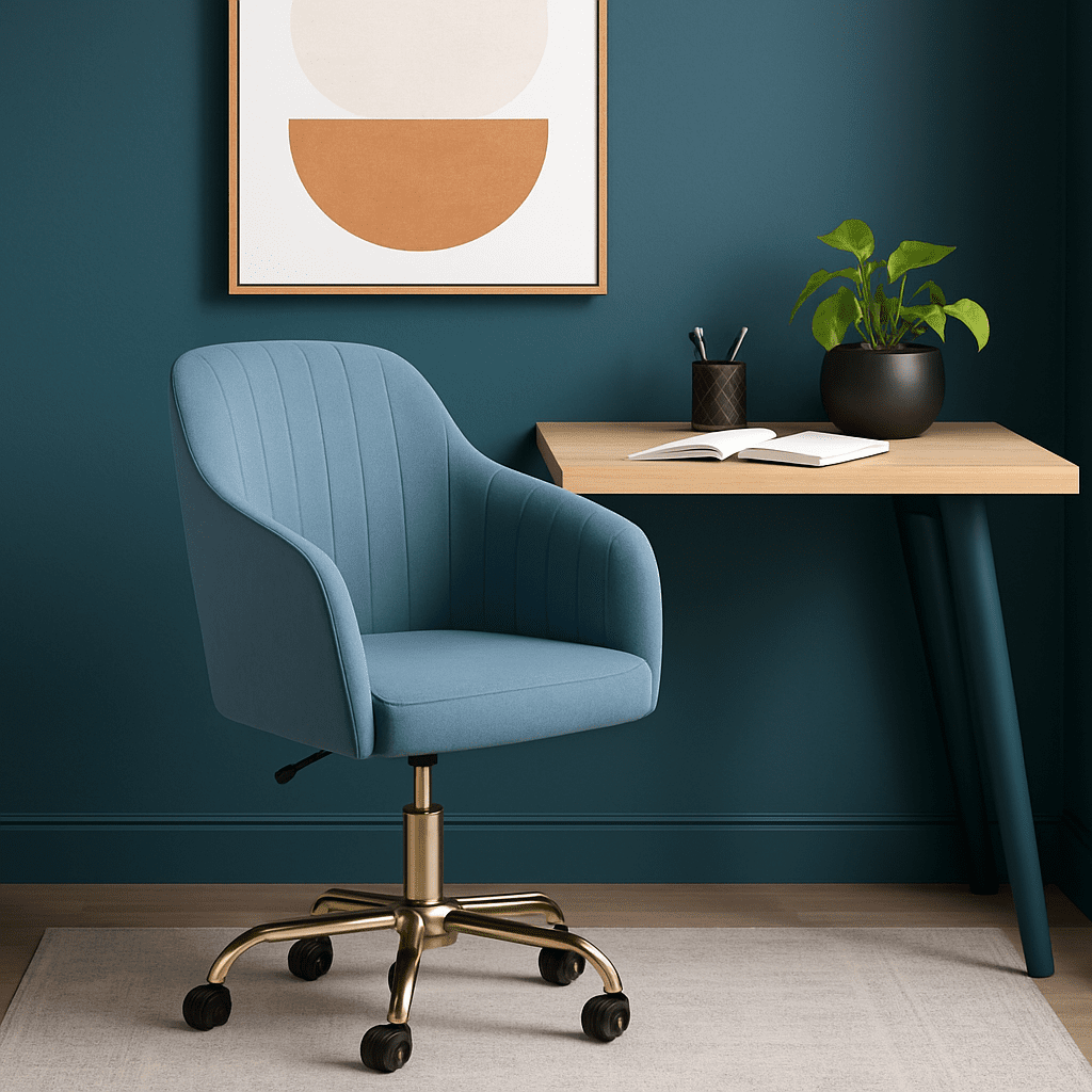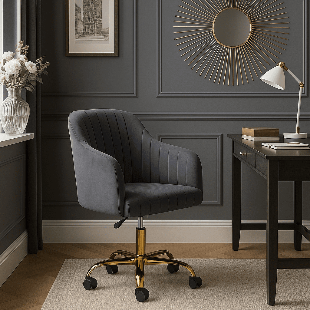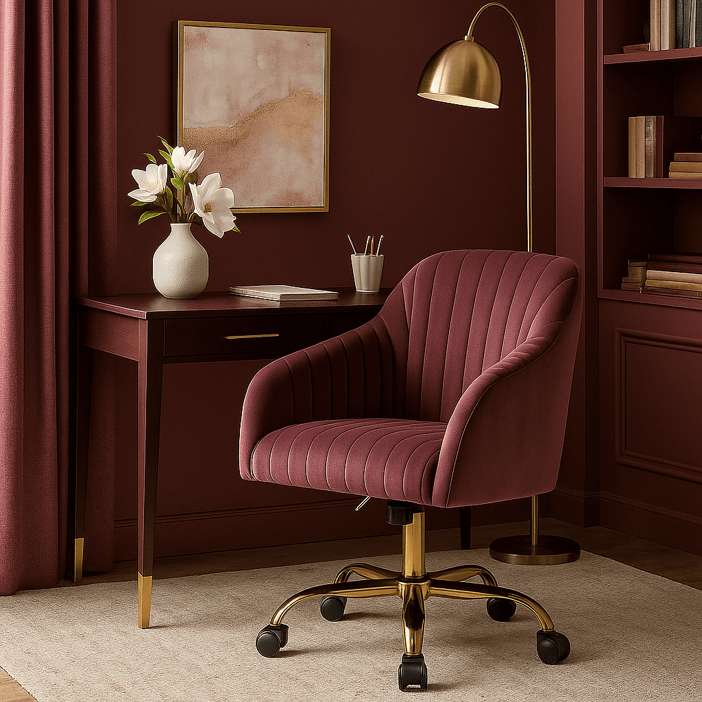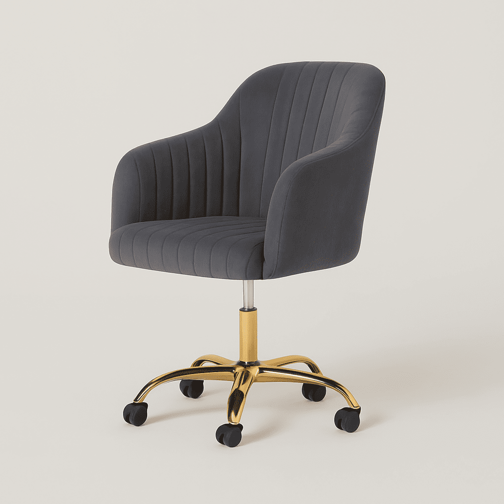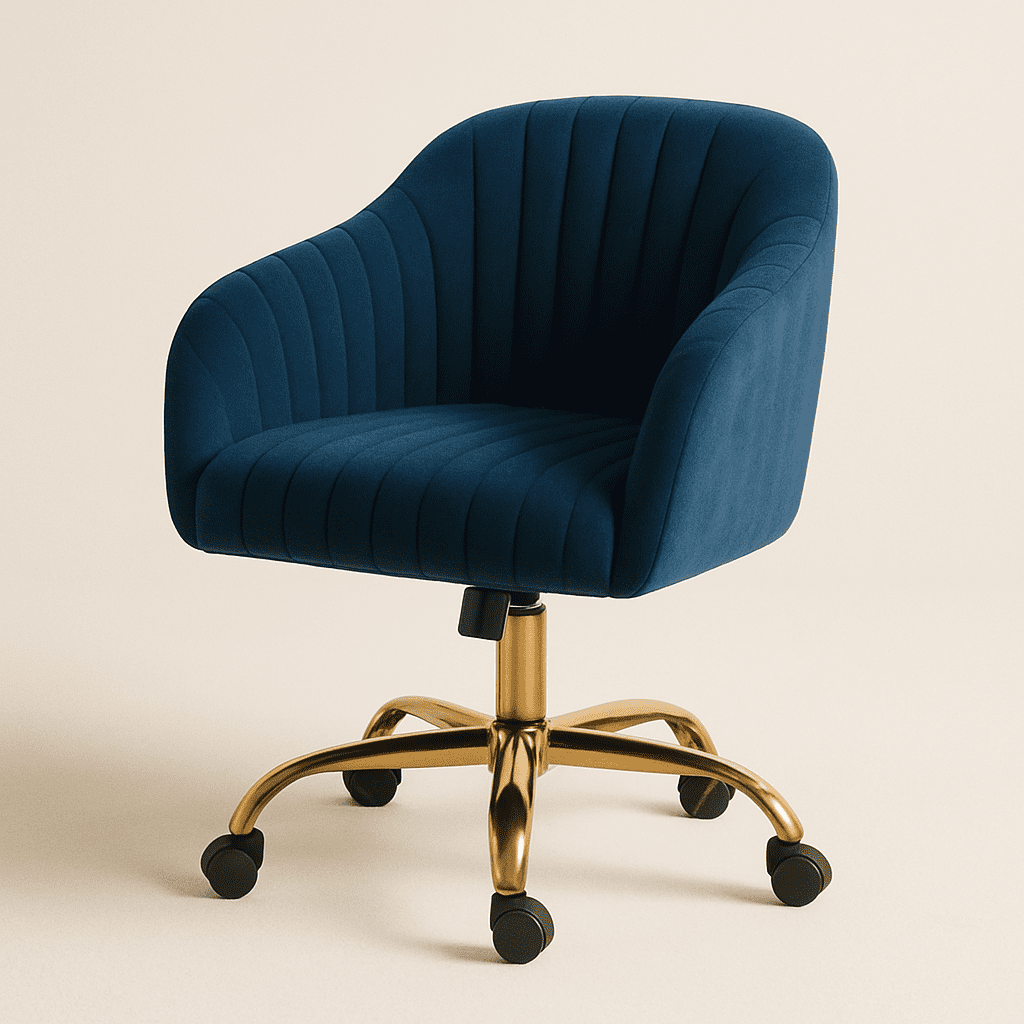 The Arvio Chair with wheels adds luxury to living rooms, bedrooms, dressing tables, or offices. Its plush velvet upholstery and ergonomic design offer comfort and style.