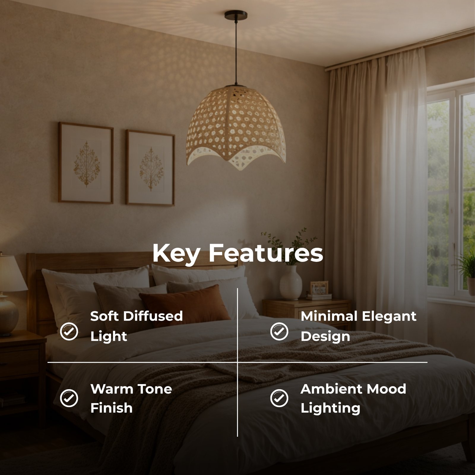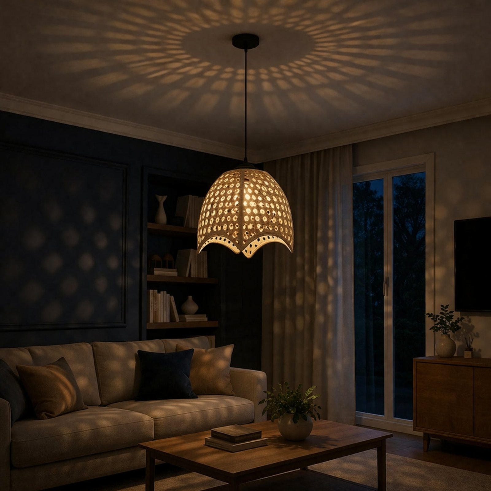 The patterns this lamp casts on the walls at night are absolutely mesmerizing! I hung it in my entryway, and it completely transformed the space. Even when it’s turned off during the day, the soft champagne-gold finish looks stunning.