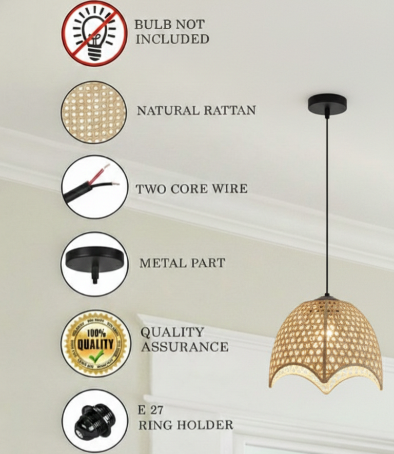 The AuraGlow Hanging Lamp is a refined pendant light designed to bring warmth, texture, and elegance into your interiors. Featuring a beautifully curved dome shade with intricate perforated detailing, it casts a soothing ambient glow while creating enchanting light patterns across the ceiling and walls.
