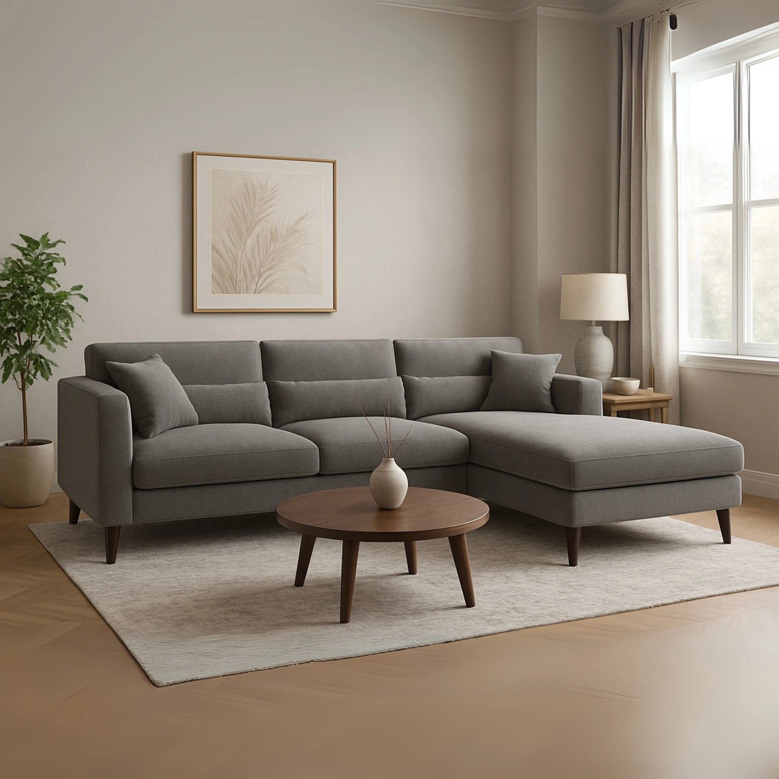 This elegant beige L-shaped sectional sofa blends clean lines with luxurious comfort. Its soft neutral tone enhances any interior décor, making it a versatile piece for both contemporary and transitional spaces. The left-hand chaise design encourages lounging, while the plush seat cushions and layered backrests provide lasting support for everyday use.