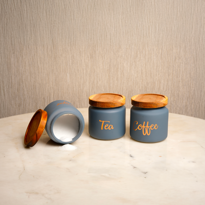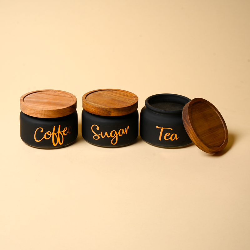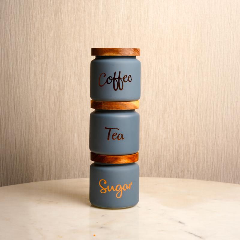 3 × Labeled Storage Jars (Coffee, Sugar, Tea)