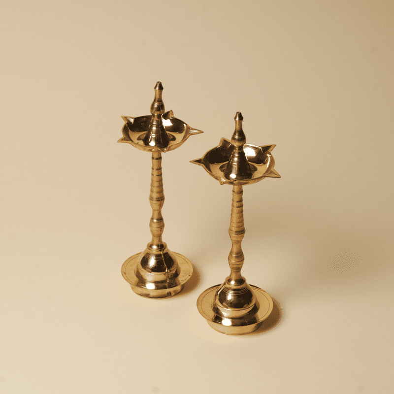 •⁠ ⁠2 × Tall Brass Diya Sta