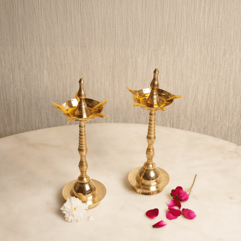 A graceful pair designed to elevate your sacred rituals. The Divine Flame Tall Duo features elongated, sculpted forms that hold your jyot beautifully offering a steady, radiant glow. Their tall silhouette brings a sense of reverence and harmony to altars, making every prayer feel more serene and intentional.