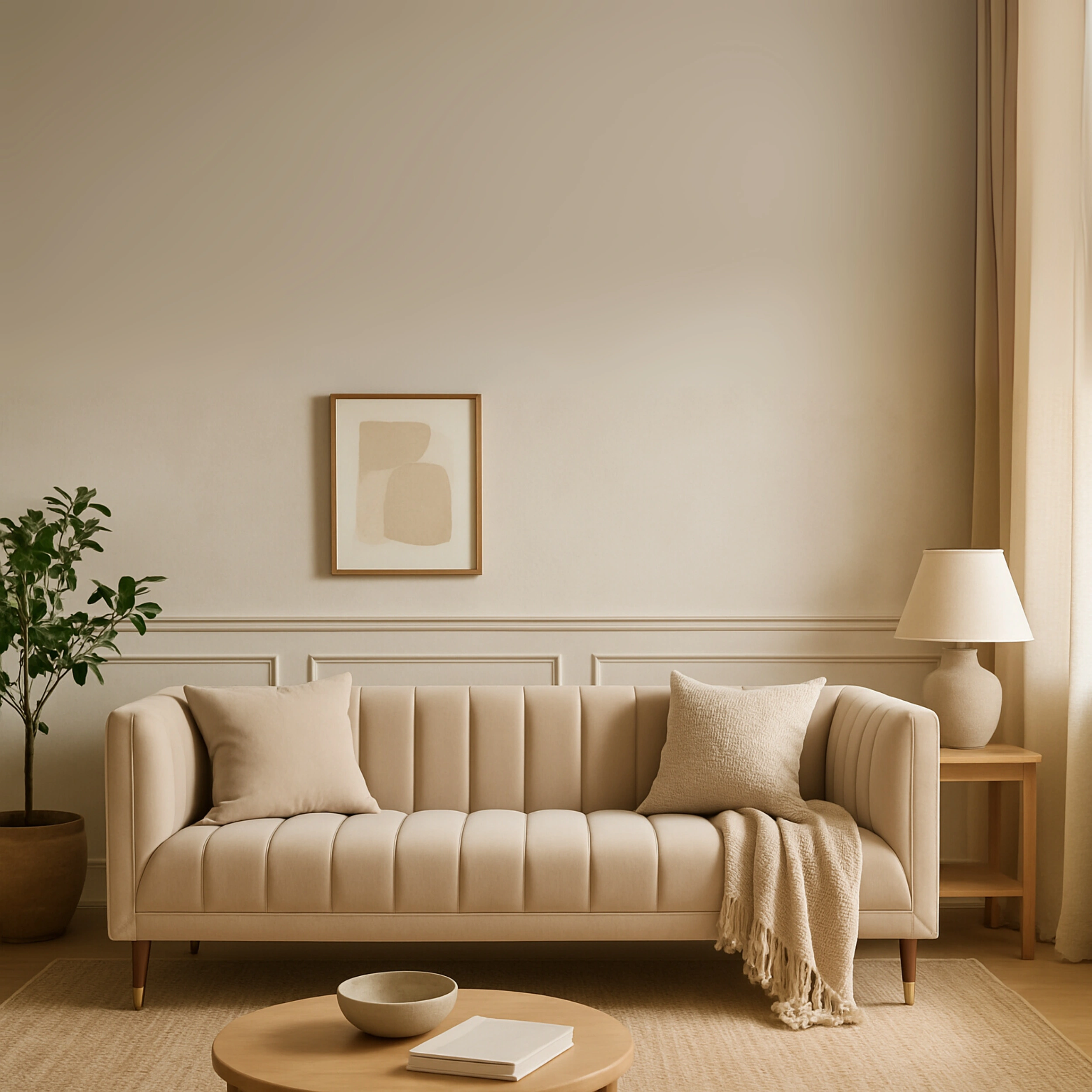 Premium velvet-finish microfiber fabric in a warm muted tone. Ultra-soft, stain-resistant, and easy to maintain.
