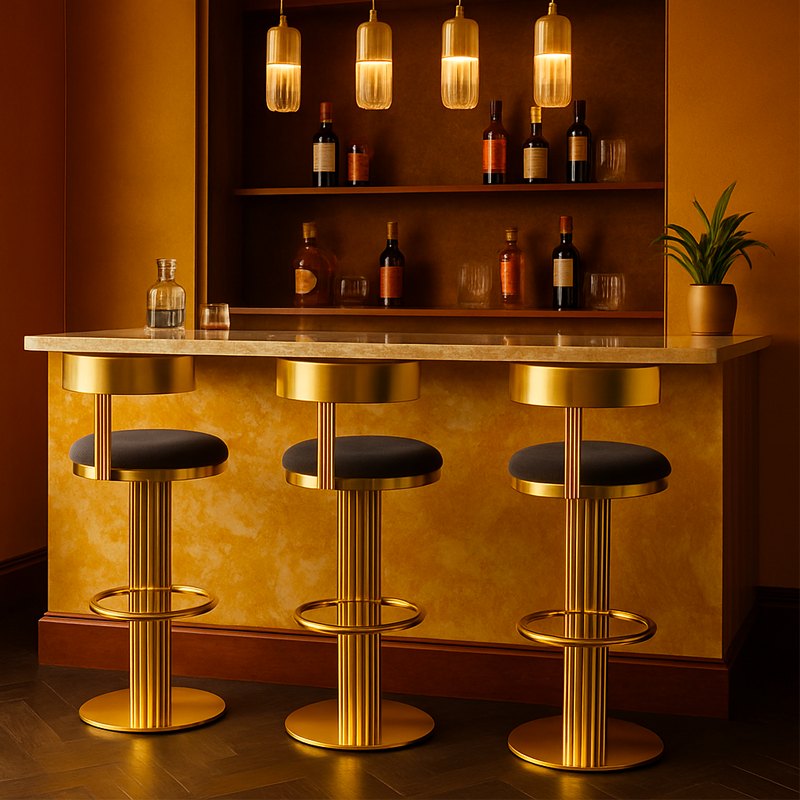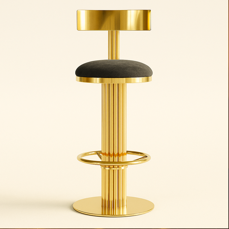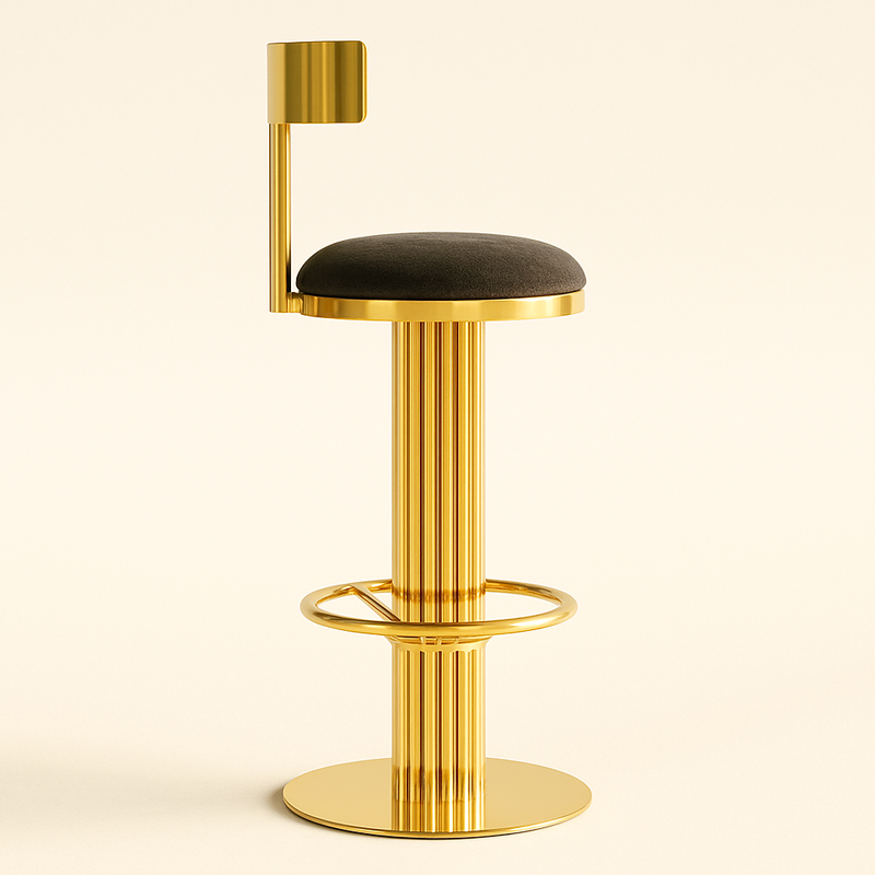 The Luxury Mid Century Eleve’ Modern Bar Stool, shown here upholstered in a white natural leather on a polished brass finish swivel frame. The curved shape of the back support is made for extra comfort whilst being seated.