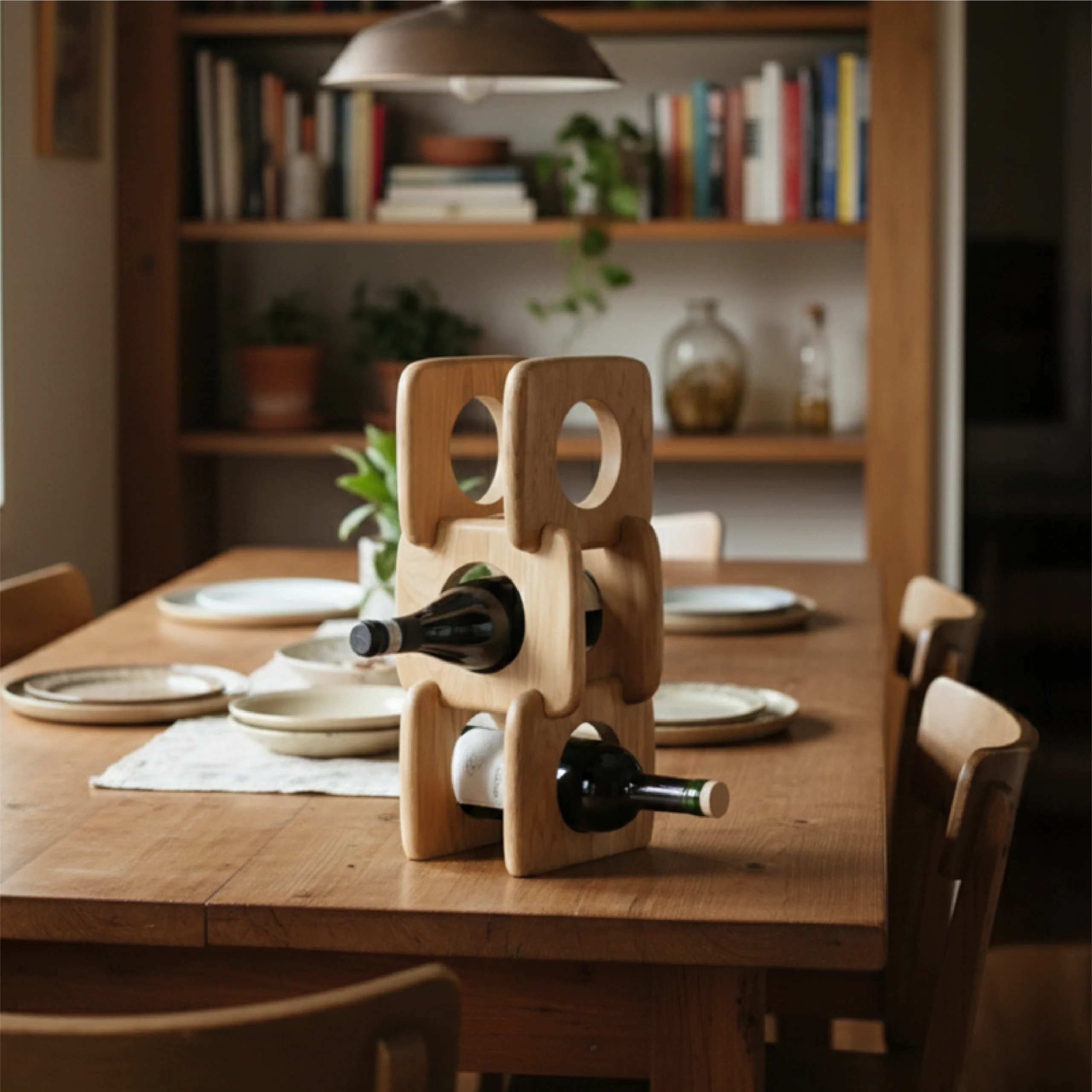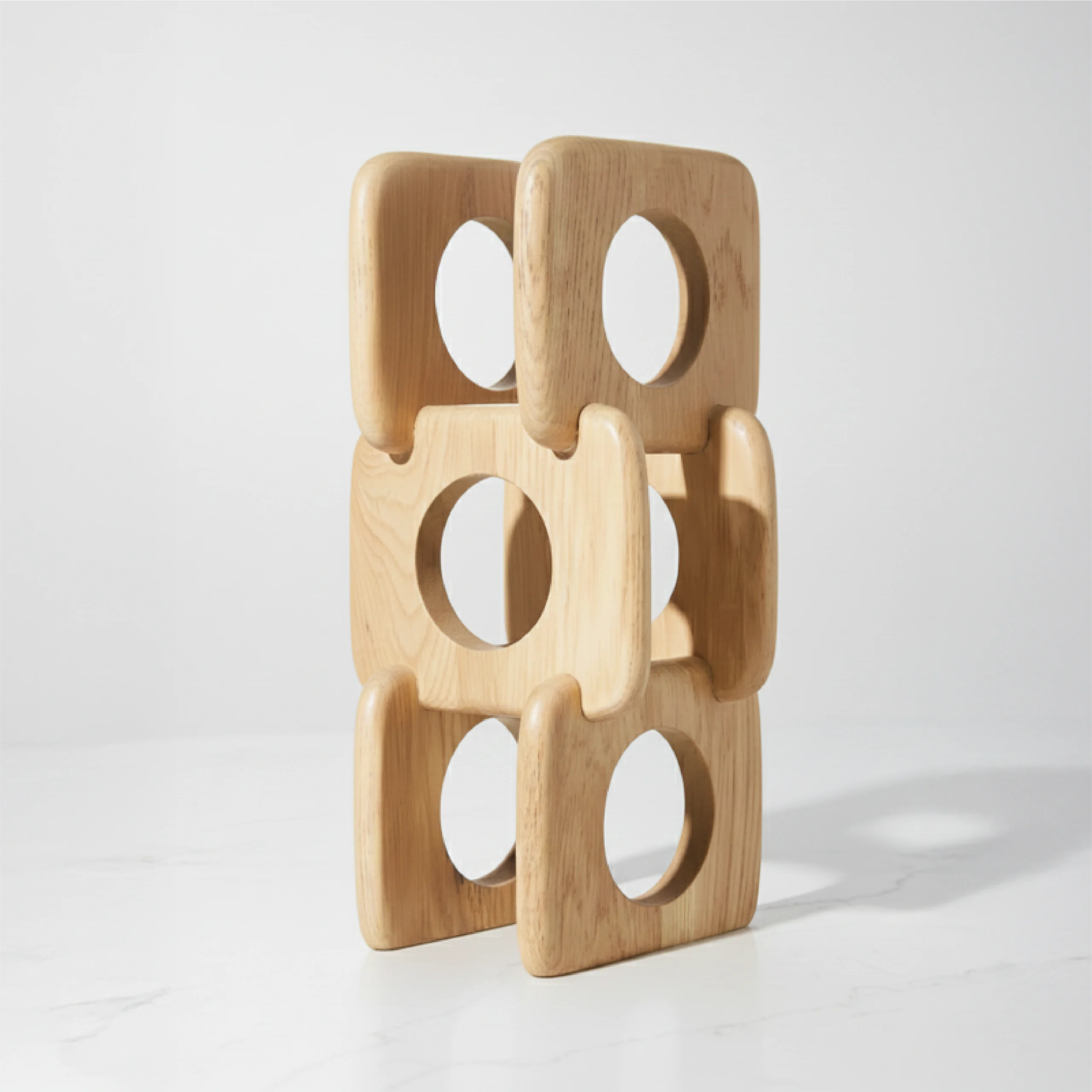 The Envero Wine Stand is a sculptural tabletop piece that brings modern artistry to wine storage. Crafted from solid wood, its stacked, geometric form securely cradles wine bottles while creating a striking visual centerpiece. Designed to store bottles horizontally for optimal cork care, Envero blends functional storage with contemporary décor—perfect for dining tables, kitchen counters, or intimate entertaining spaces.