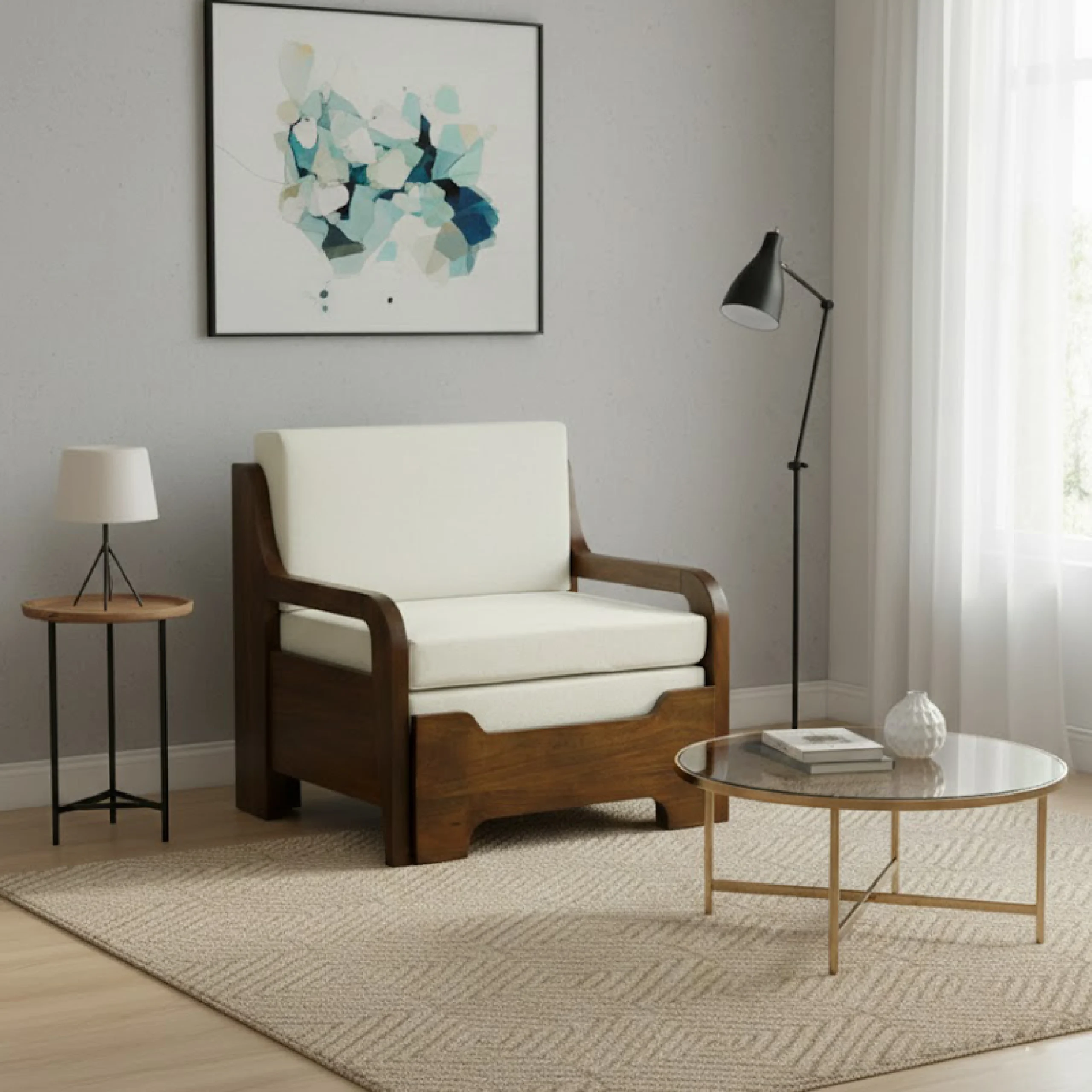 The FlexiRest Sofa Bed is a smart, space-saving furniture solution designed for modern homes. With its sleek wooden frame and plush cushioned upholstery, it functions perfectly as a comfortable single-seater sofa during the day and easily converts into a relaxing bed when needed.