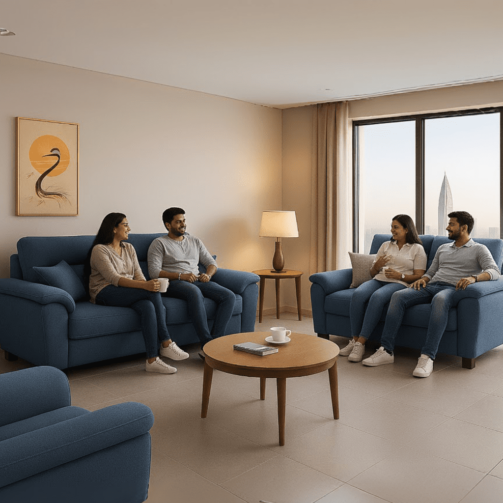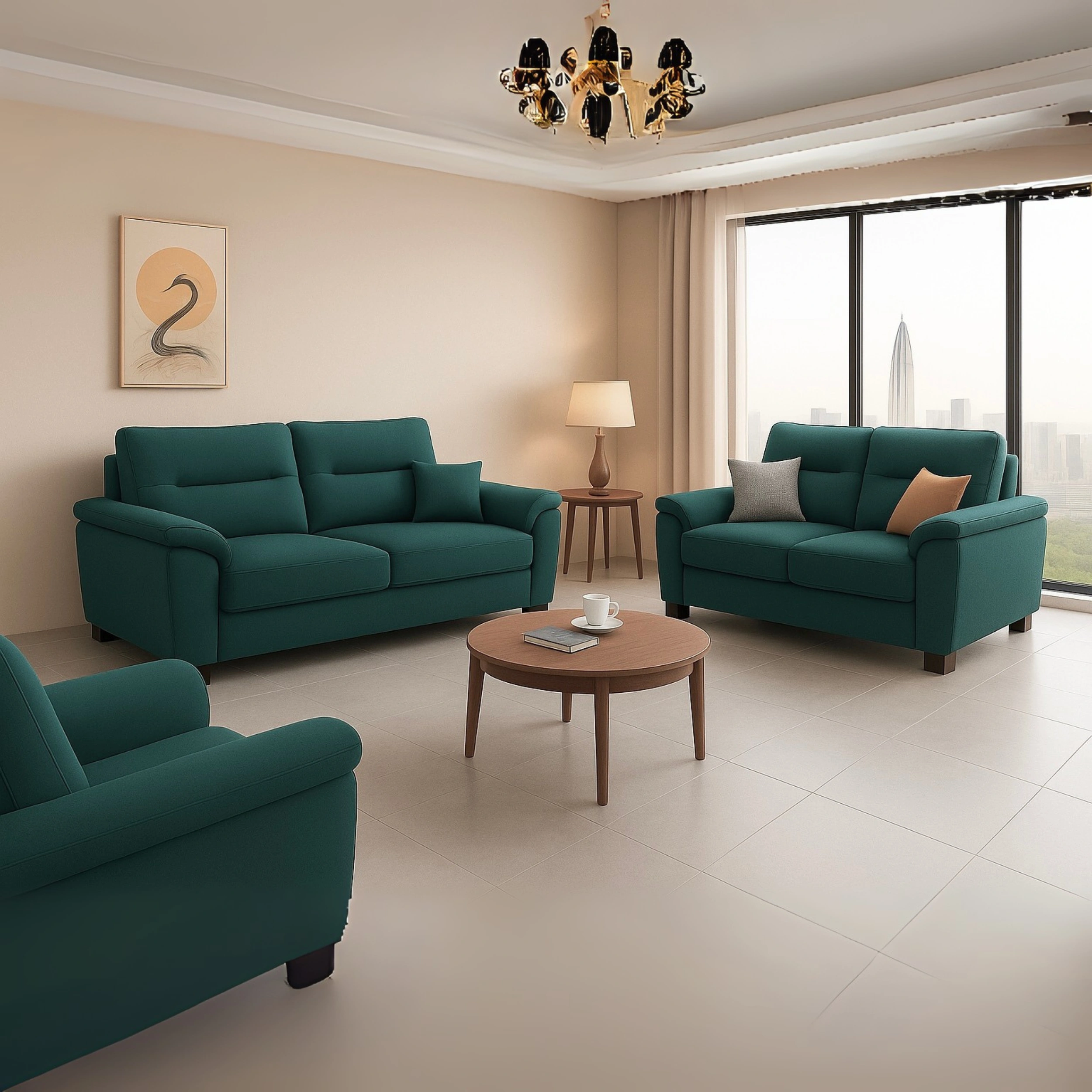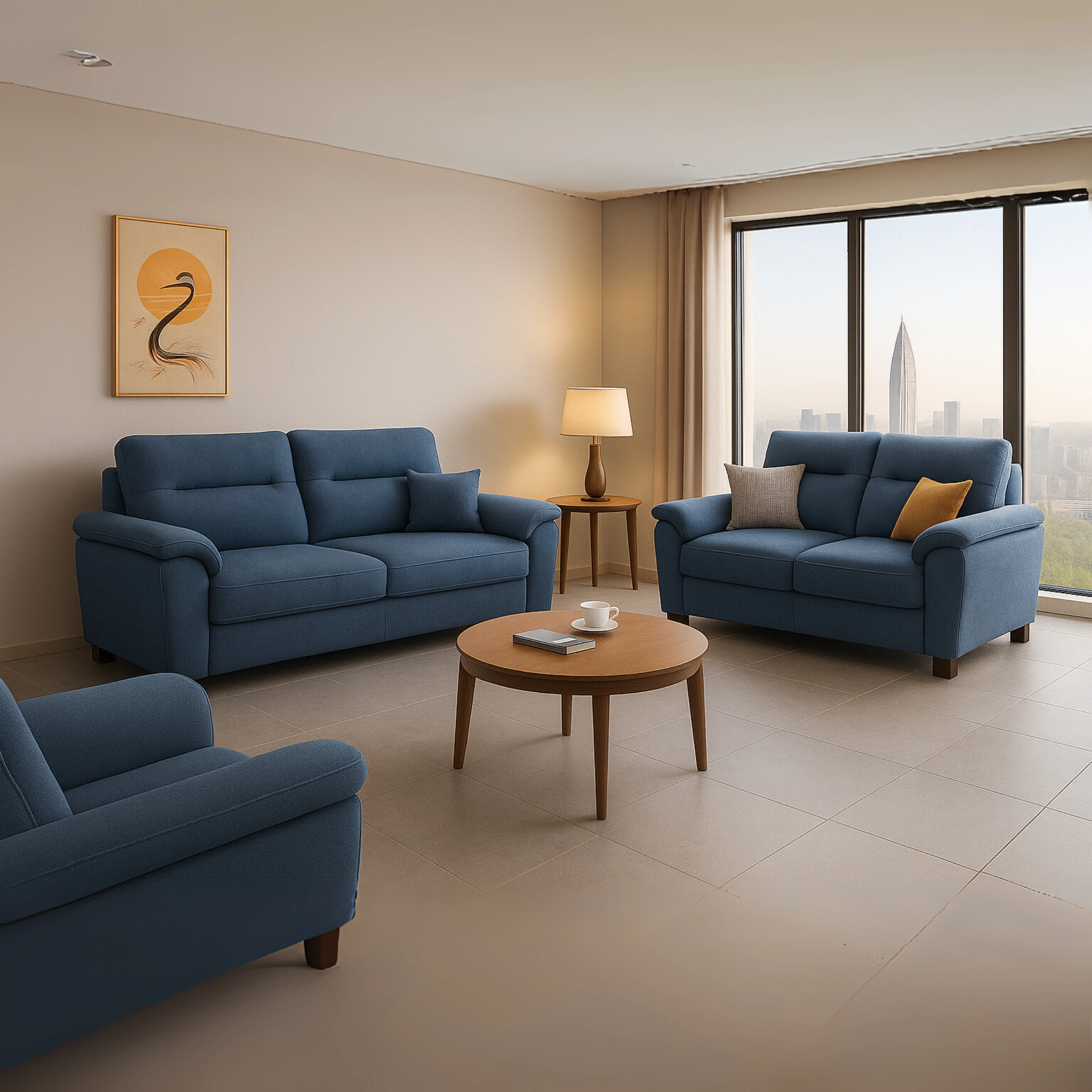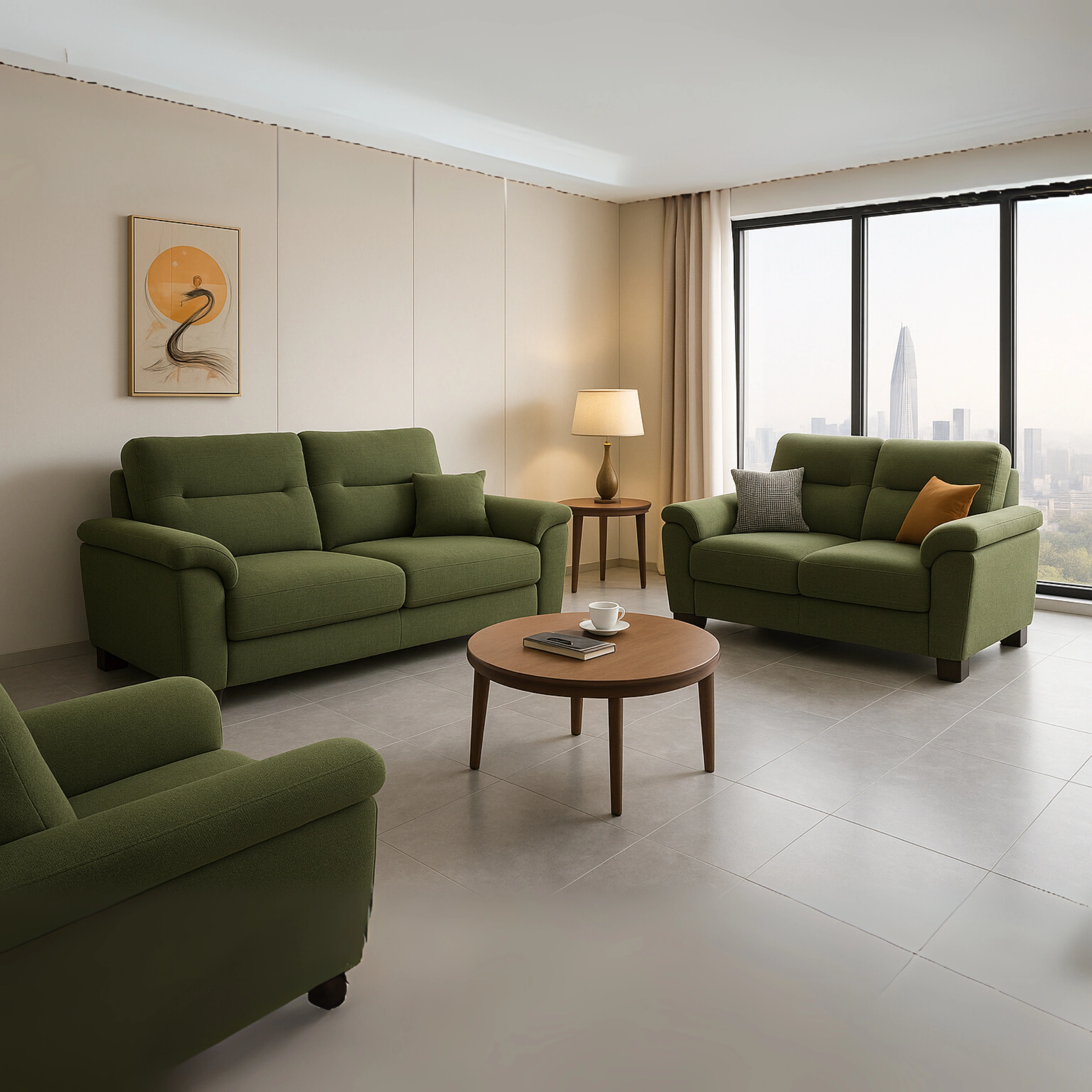 This plush sofa set delivers casual sophistication and timeless comfort with its rounded arms, deep seat cushions, and soft upholstery. Designed for modern living spaces, the set combines aesthetics and functionality, making it ideal for lounging, entertaining, or family evenings.