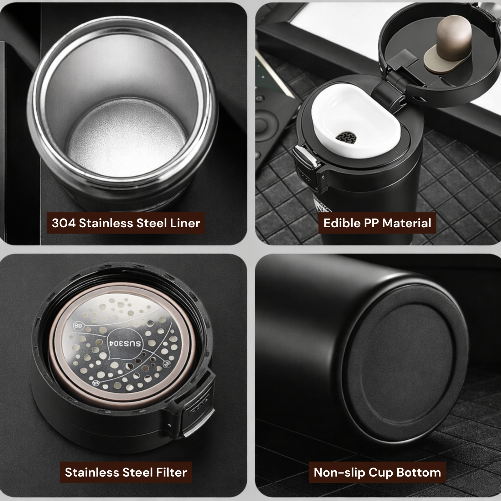 Upgrade your daily coffee routine with this stylish matte black insulated travel mug. Made from premium 304 food-grade stainless steel, it features double-wall vacuum insulation to keep drinks hot for up to 6 hours and cold for up to 8 hours. The leak-proof, one-touch lid ensures spill-free use, while the compact 400ml design fits perfectly in most car cup holders. Durable, BPA-free, and ideal for coffee, tea, or cold beverages on the go.