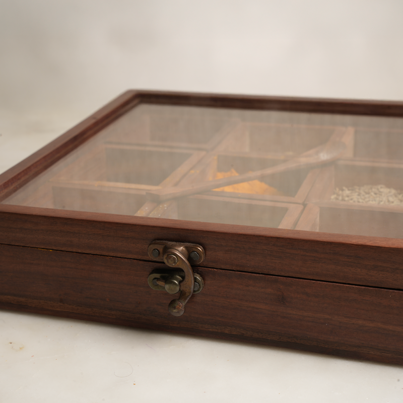 • Transparent Glass Lid – View spices without opening; airtight brass latch keeps freshness intact