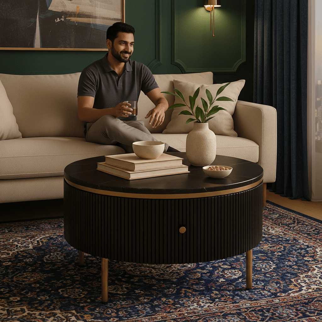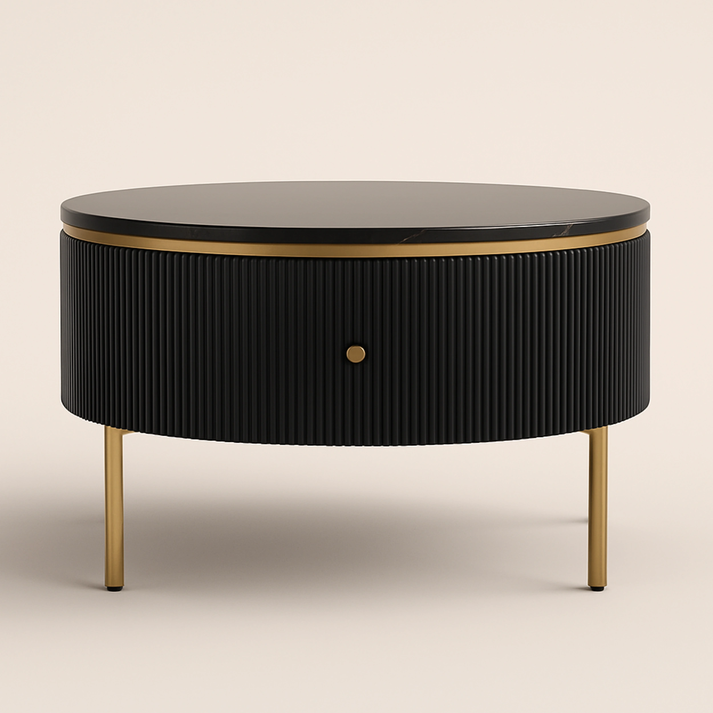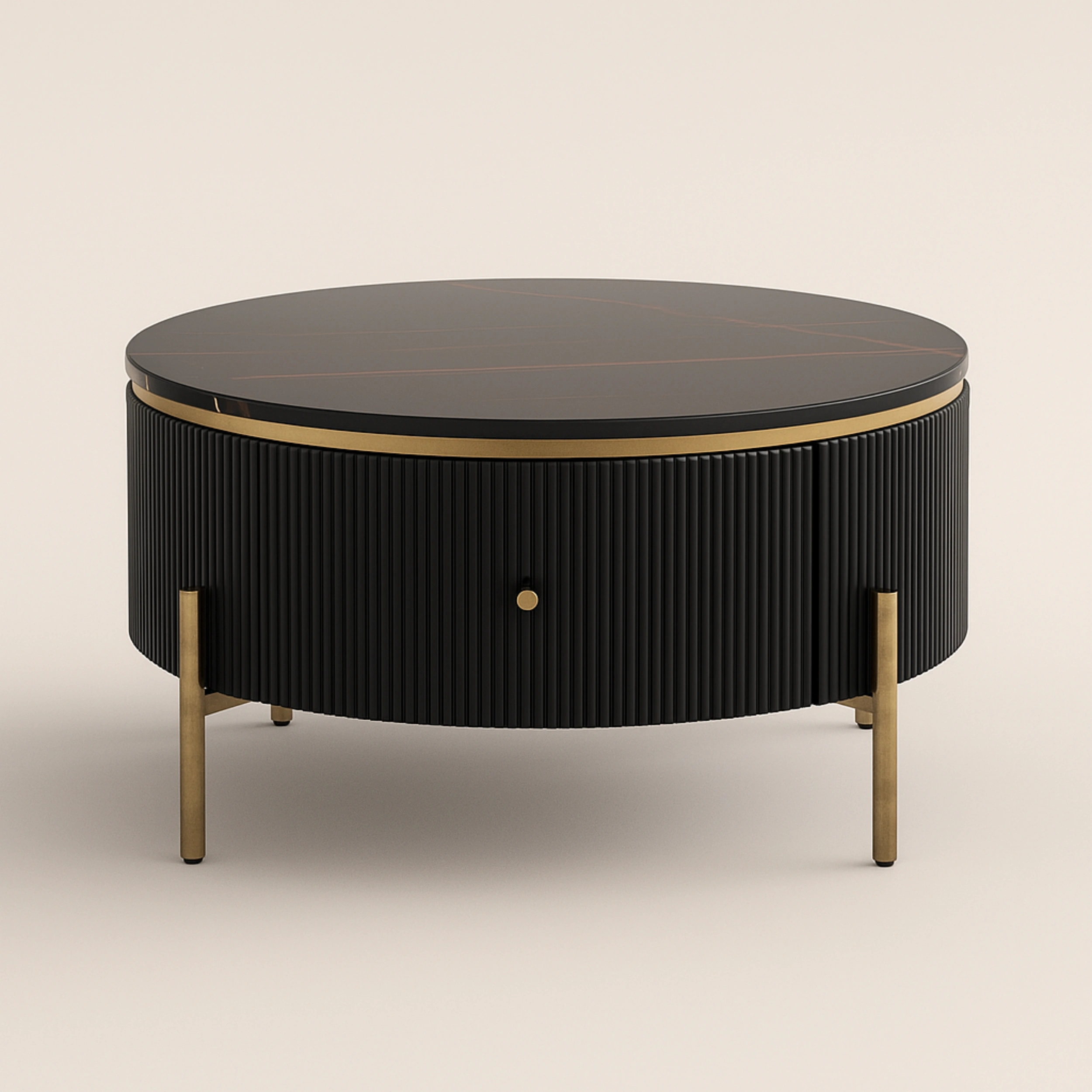 Upgrade your space with this modern delicate round coffee table. Featuring the textured surface, it brings contemporary charisma and distinguishes appeal. Smooth round tabletop offers a great perch for plants, magazines, and books while a drawer is perfect for storing magazines, remote control, toys and more. Coming with the refined MDF, it offers sturdy support and stability. Do not hesitate to take this admirable piece home!