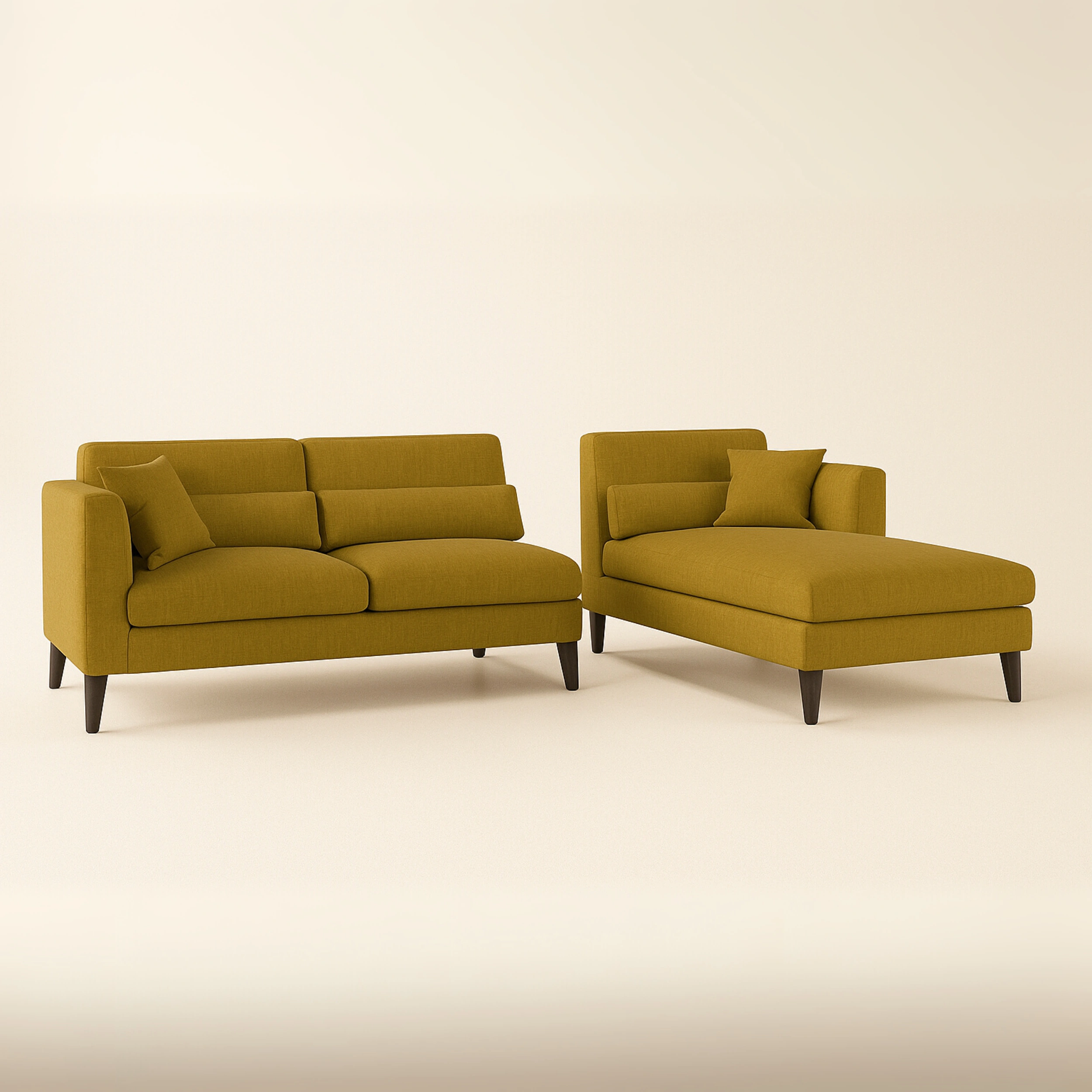 Tapered solid wood legs with a dark walnut finish – stable and adds contrast