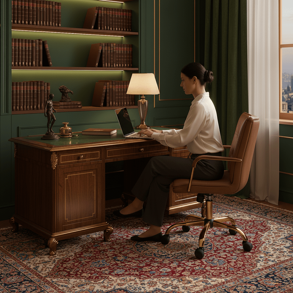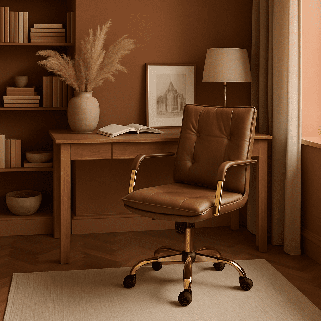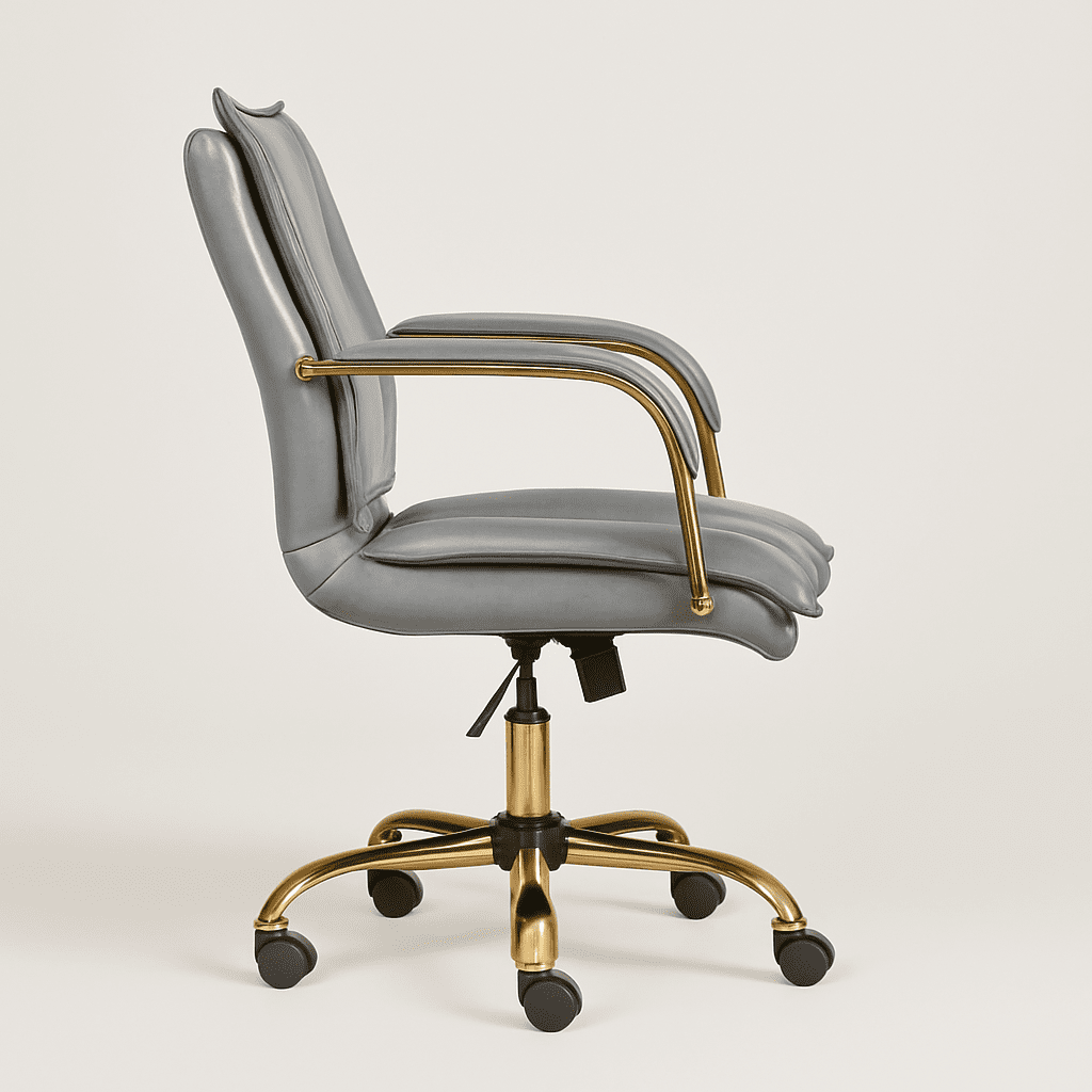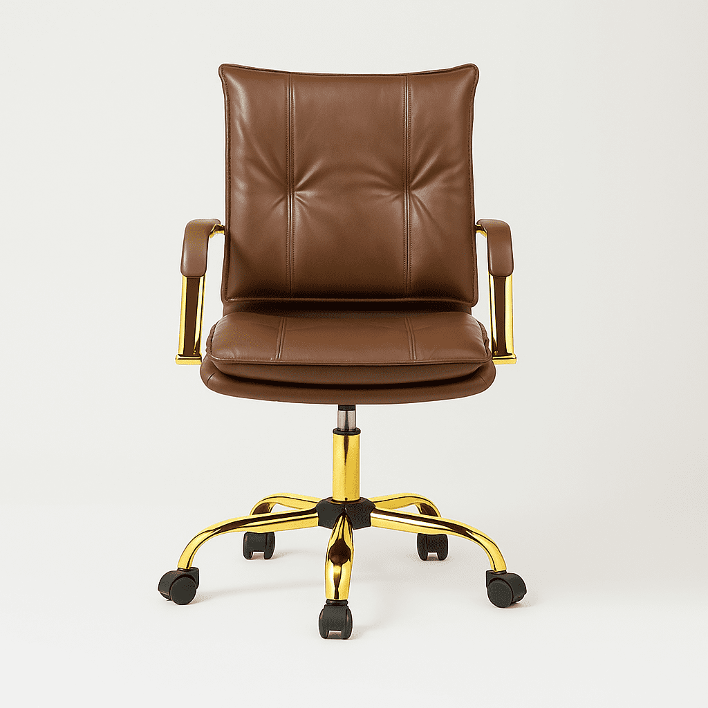 This vintage-inspired boss office chair features a gently ribbed backrest, cushioned seat, and plush armrests in gold accents to ensure all-day support in style while smooth-rolling casters provide seamless mobility. Perfect for home offices and creative workspaces, this black executive chair online blends durability, comfort, and style—without compromising affordability.
