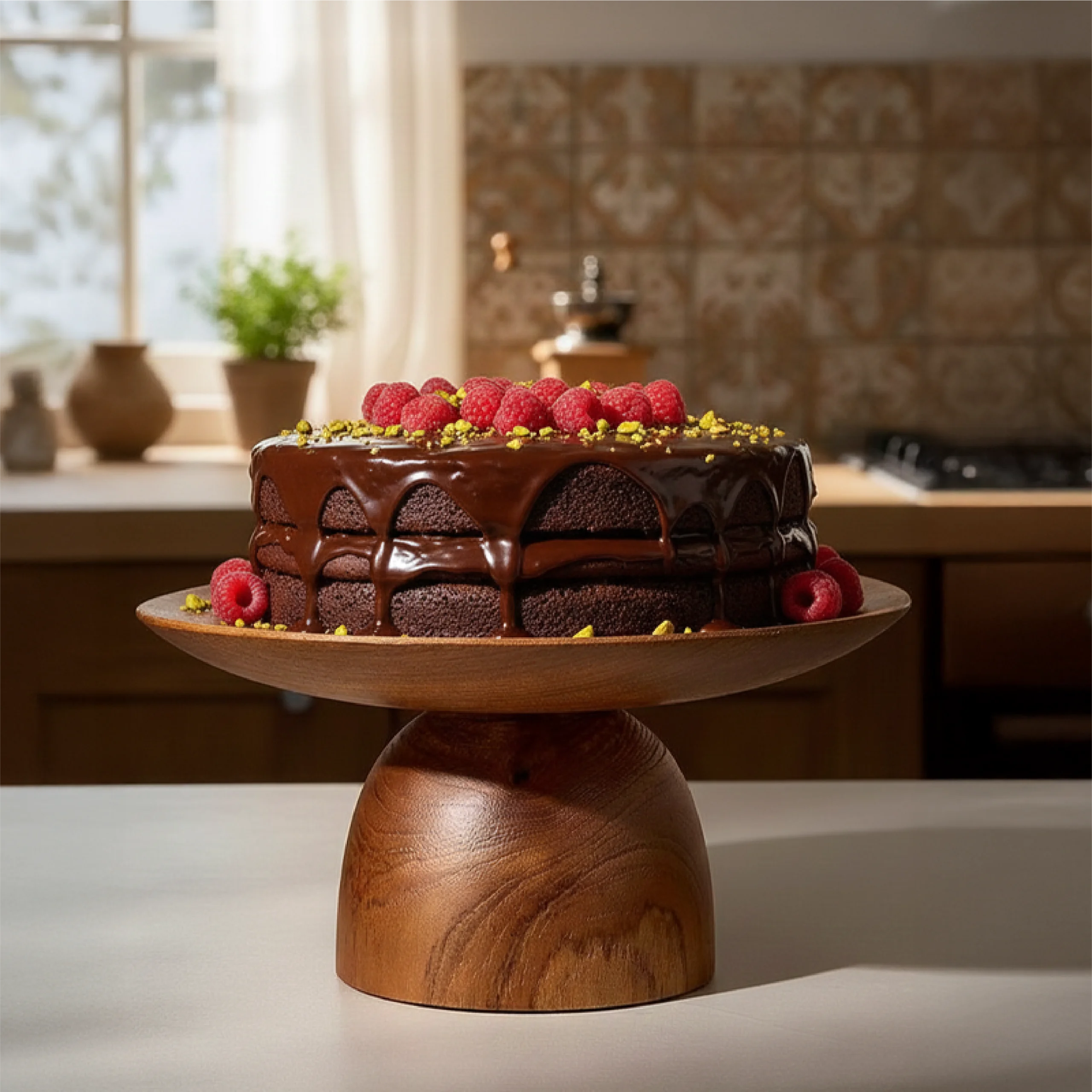 The Platera Wood Pedestal is a refined serving essential crafted to elevate everyday and celebratory tables alike. Featuring a wide, flat platter top balanced on a sculpted wooden base, it offers both stability and visual presence. The smooth curves and rich natural grain make it an elegant platform for cakes, desserts, fruits, or styled table displays.