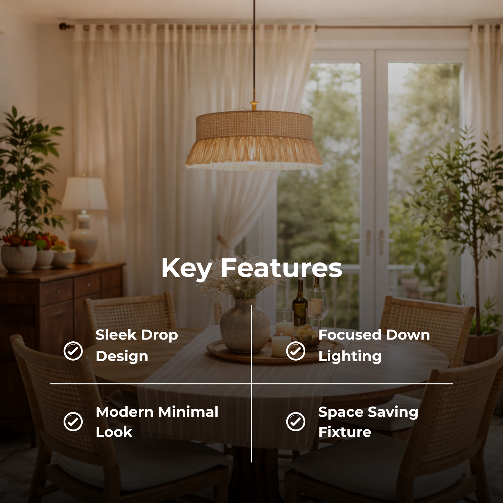 Tasseled Drum Hanging Lamp is a premium ceiling light with a soft drum shape and decorative tassels. It creates a warm and elegant lighting effect, perfect for bedrooms, living rooms, and aesthetic spaces.