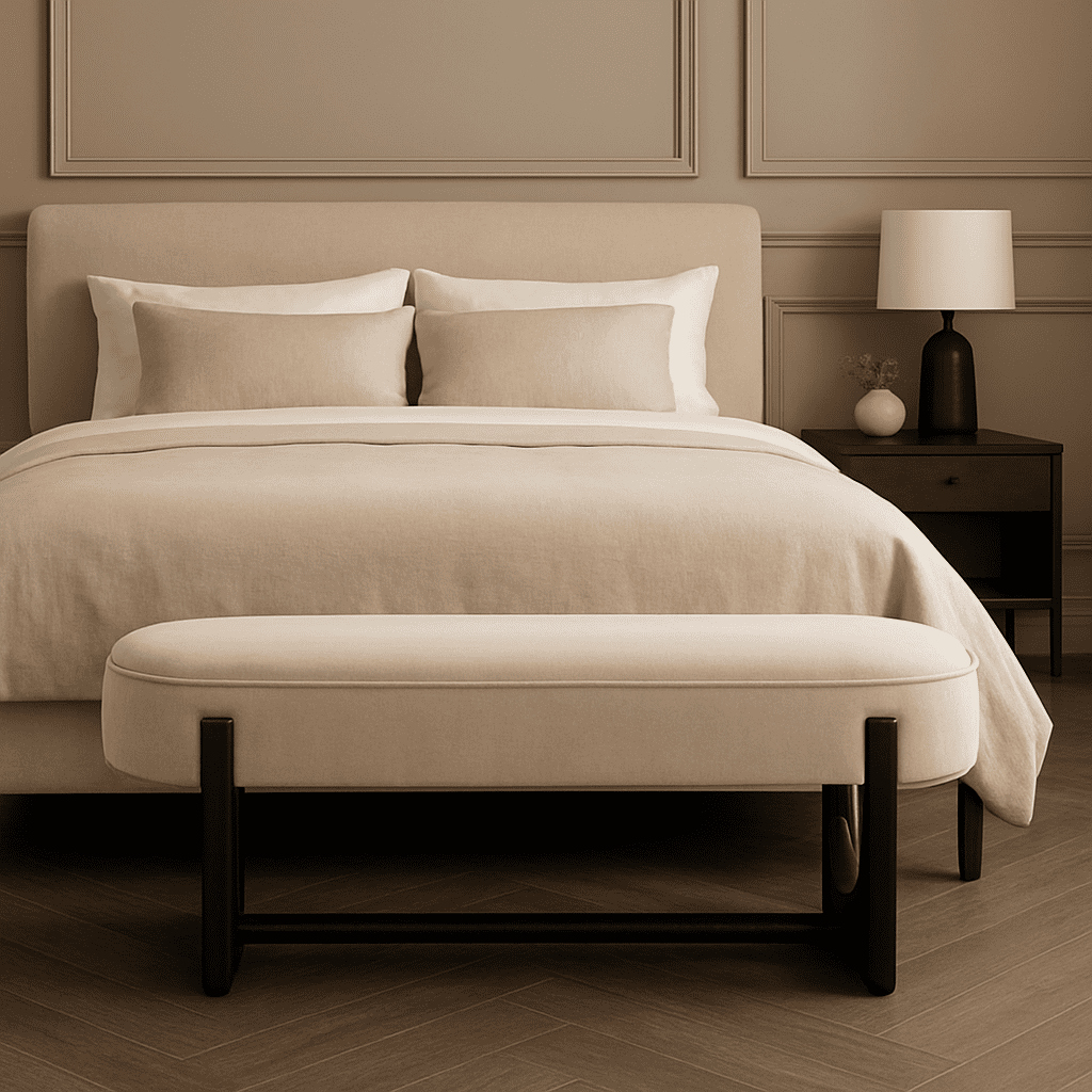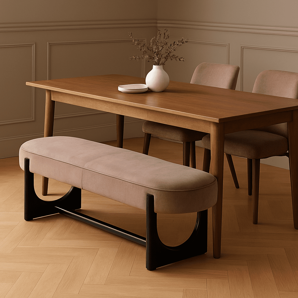 The Tavira champagne velvet bench is an exclusive Danetti design, adding both style and function to any space. Upholstered in a luxuriously soft, recycled champagne velvet, its high-quality foam and fibre filling ensures lasting comfort and support. The sleek, rectangular silhouette is framed by a minimalist wooden base, complementing the bench’s contemporary appeal. This versatile piece works beautifully as additional seating at a dining table, placed at the foot of a bed, or even as a standalone statement piece in a hallway or living area. Style it with a selection of textured cushions and throws to create an inviting and personalised touch. Pair with a contemporary dining table and coordinating dining chairs to complete the look.