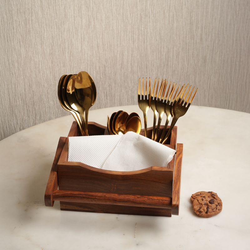 1 × Wooden Cutlery & Napkin Holder