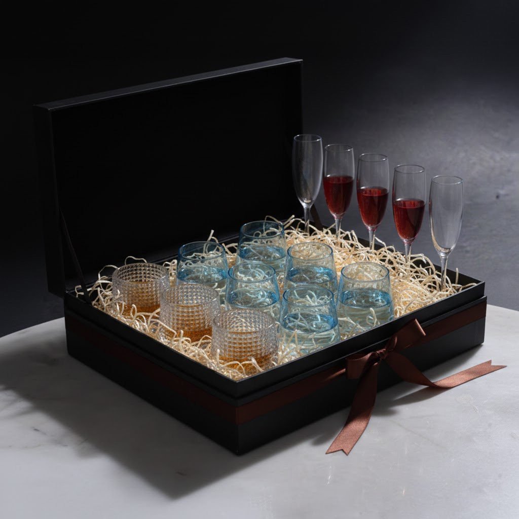 Thoughtfully curated for every kind of gathering, The Celebration Trio brings together three essential glassware styles designed to elevate both everyday moments and special occasions. From sparkling champagne to refreshing juices and effortless pours, this hamper is a complete expression of modern hosting and timeless elegance.