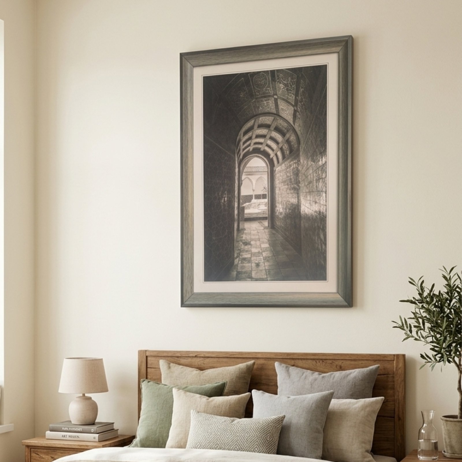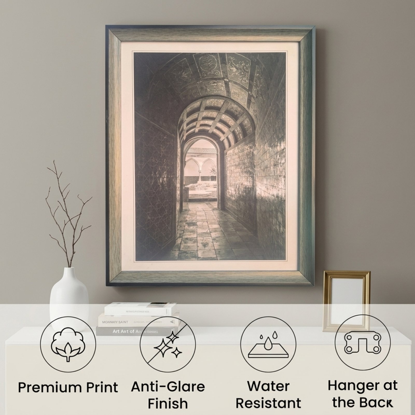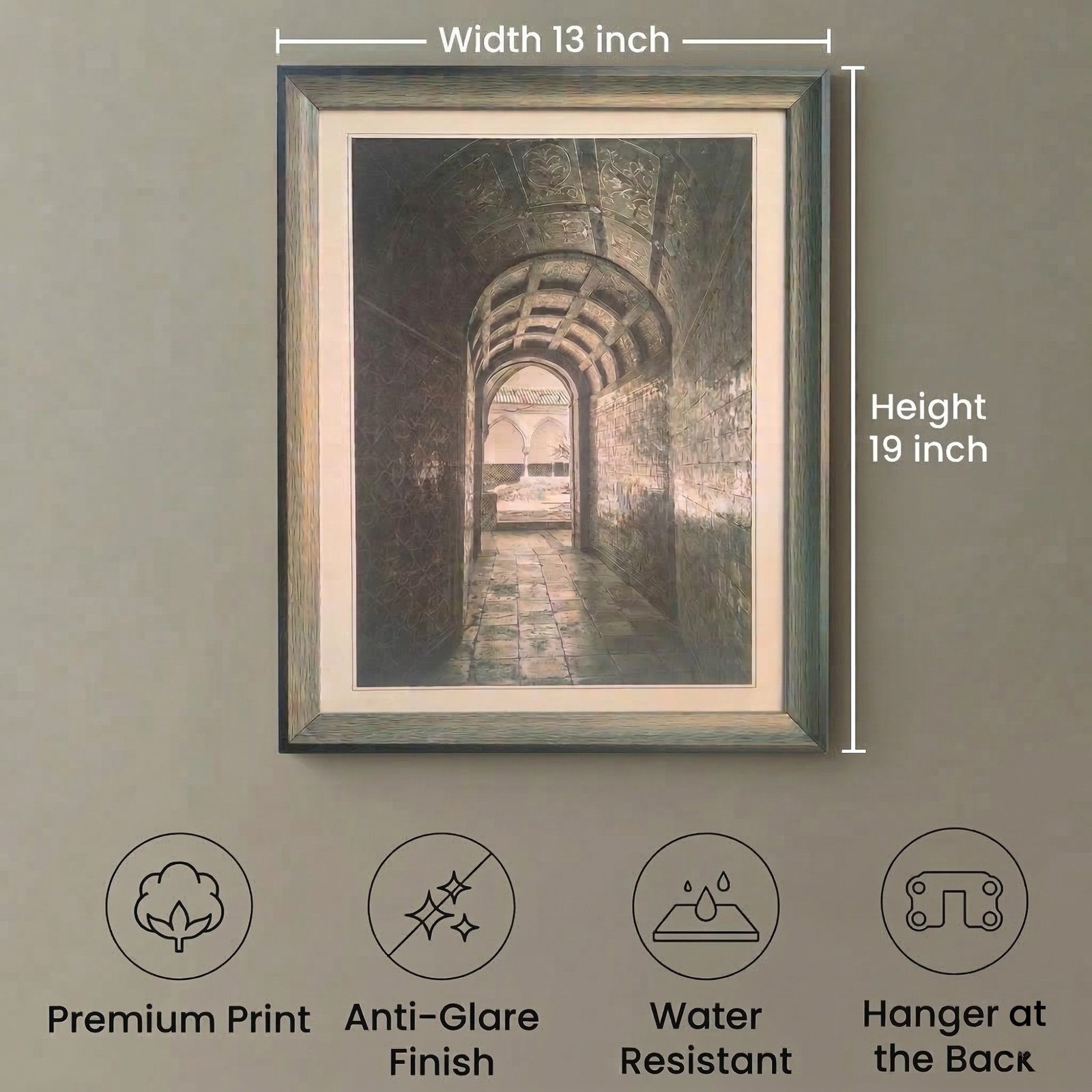 Add depth, elegance, and architectural charm to your interiors with the Timeless Passage Vintage Archway Wall Art. This stunning monochrome artwork captures a beautifully detailed arched corridor leading into a peaceful courtyard, creating a sense of mystery, history, and artistic sophistication. Perfectly encased in a premium wooden frame, it adds a warm, inviting, and sophisticated vintage aesthetic to any room.
