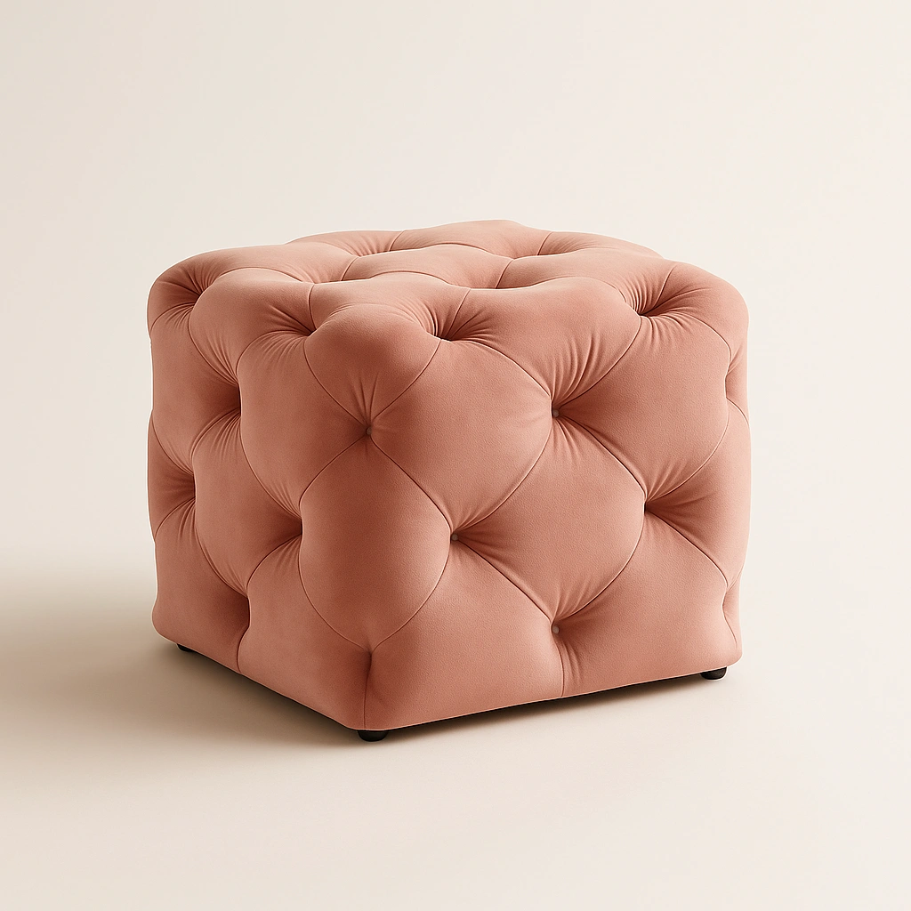 A perfect fusion of elegance and comfort, this blush-toned cube ottoman is a timeless accent piece for modern or classic interiors. Its plush diamond-tufted surface, coupled with soft velvet fabric, exudes luxury and charm. The structured cube form offers versatility—use it as a seat, footrest, or even a side table with a tray. This ottoman brings both visual appeal and functional design to any space.