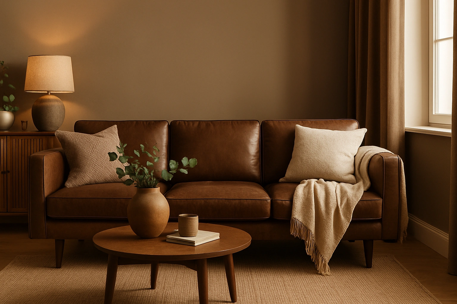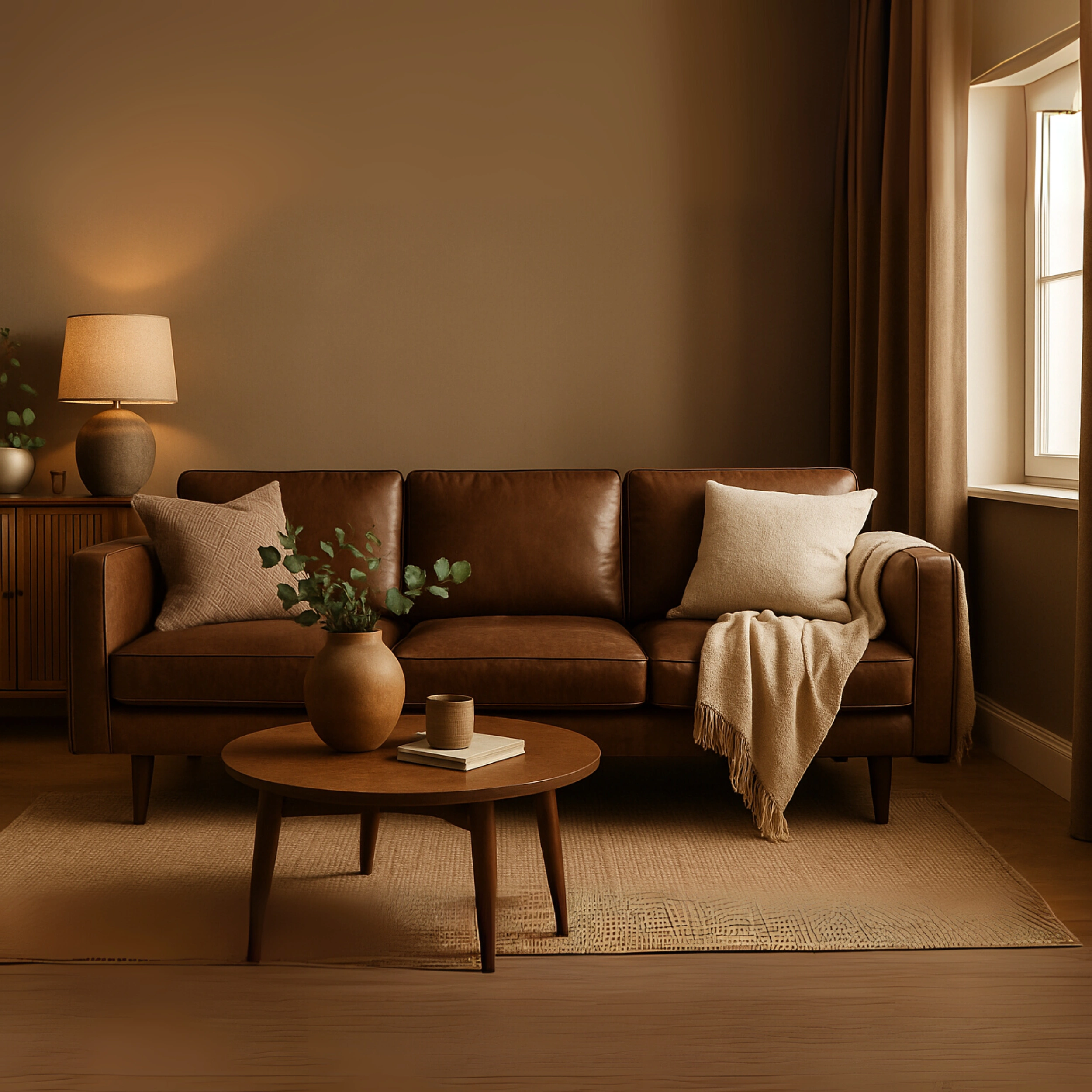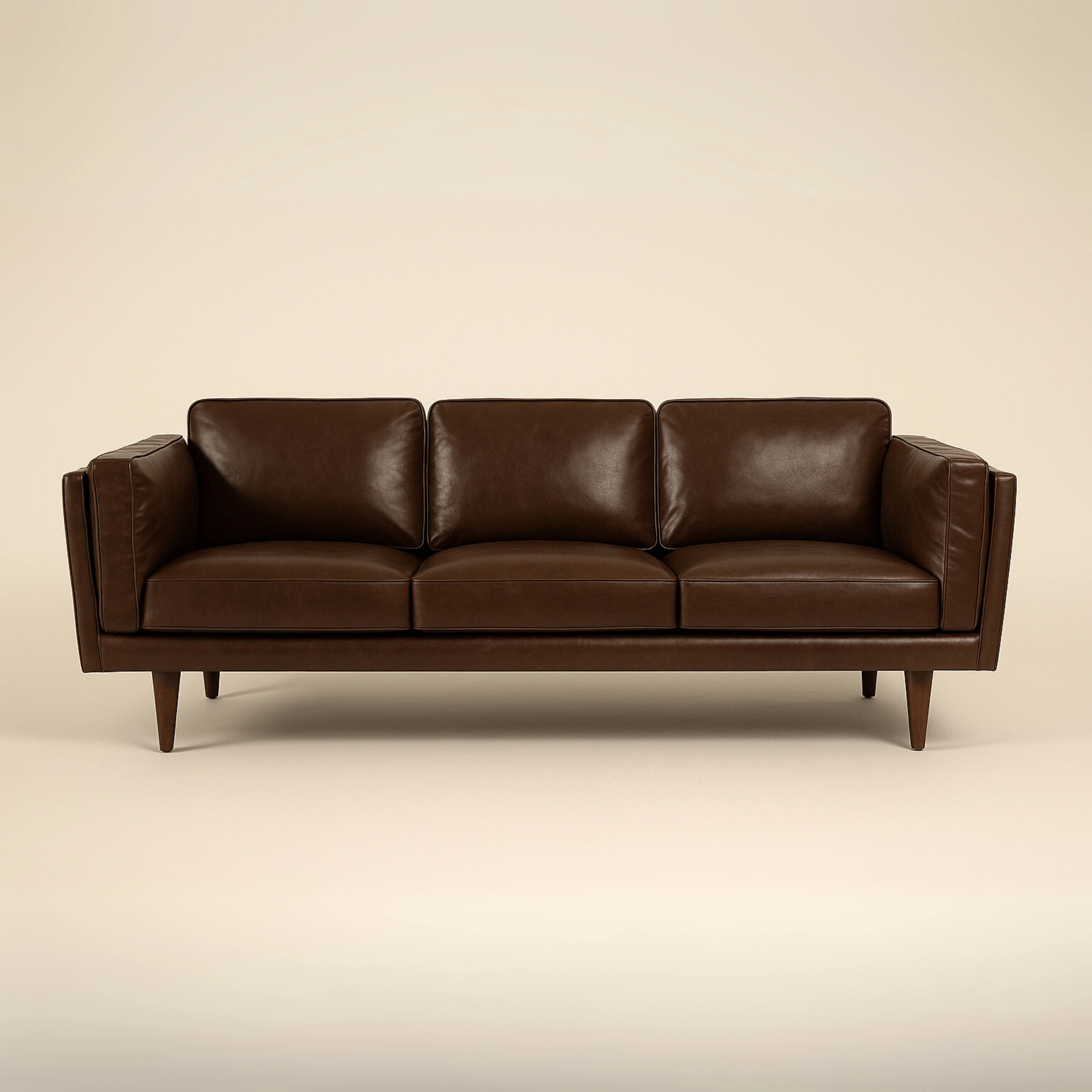 A sleek and warm-toned 3-seater sofa featuring clean lines and minimalistic design. Upholstered in rich tan leatherette, it blends effortlessly into modern or earthy-toned interiors. The wide seating, supportive cushioning, and structured backrests offer both style and comfort, making it a perfect centerpiece for any contemporary living room.