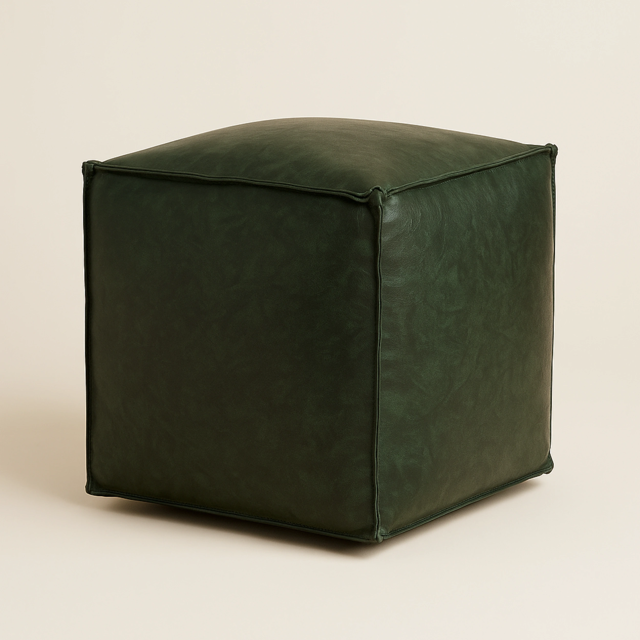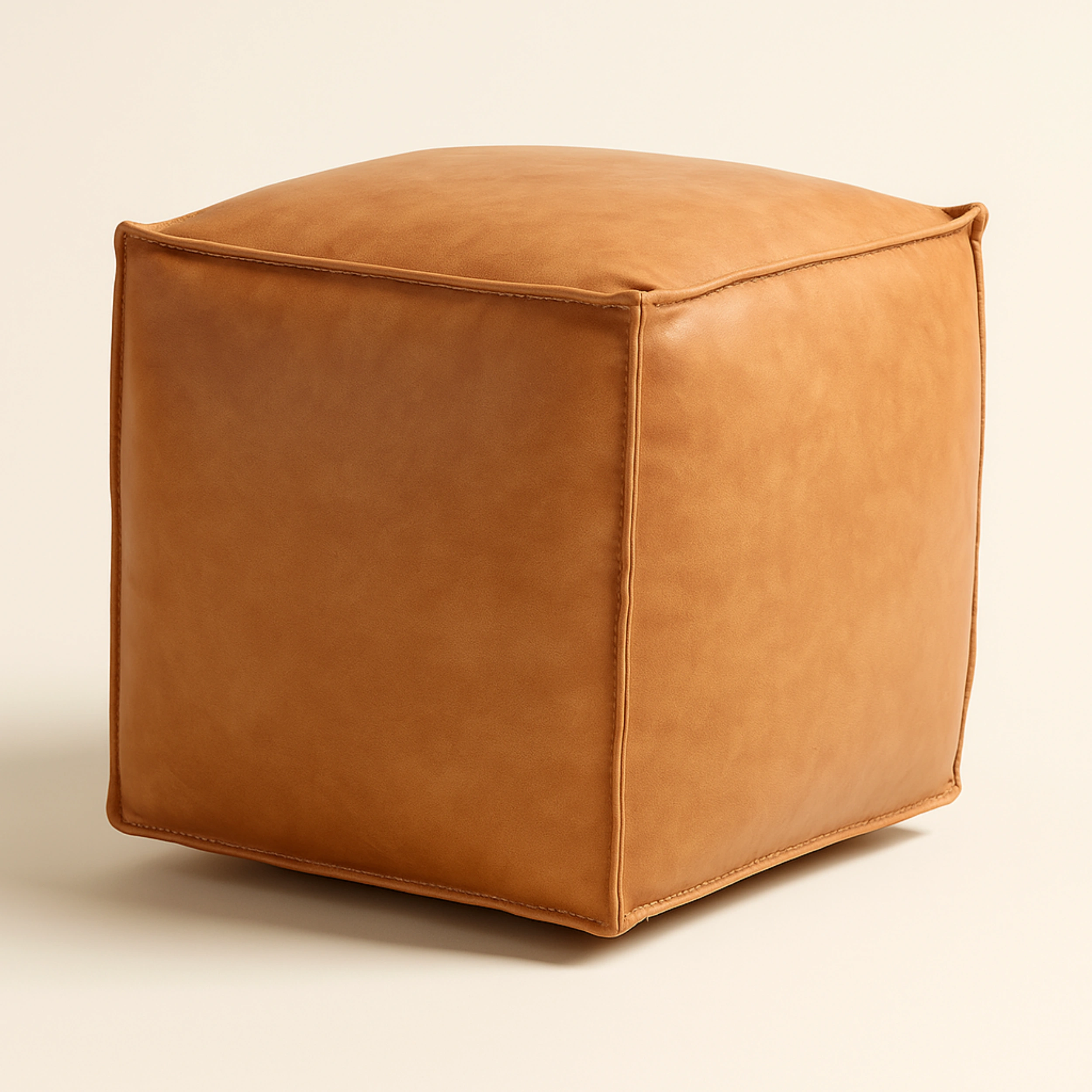 Sleek, minimal, and modern faux leather ottoman adds a rich, bold statement to any room. The structured cube form and smooth finish make it suitable for contemporary interiors, while its multifunctional design allows it to be used as a stool, footrest, or compact side table. With visible seam detailing and soft edges, it combines form and function beautifully.