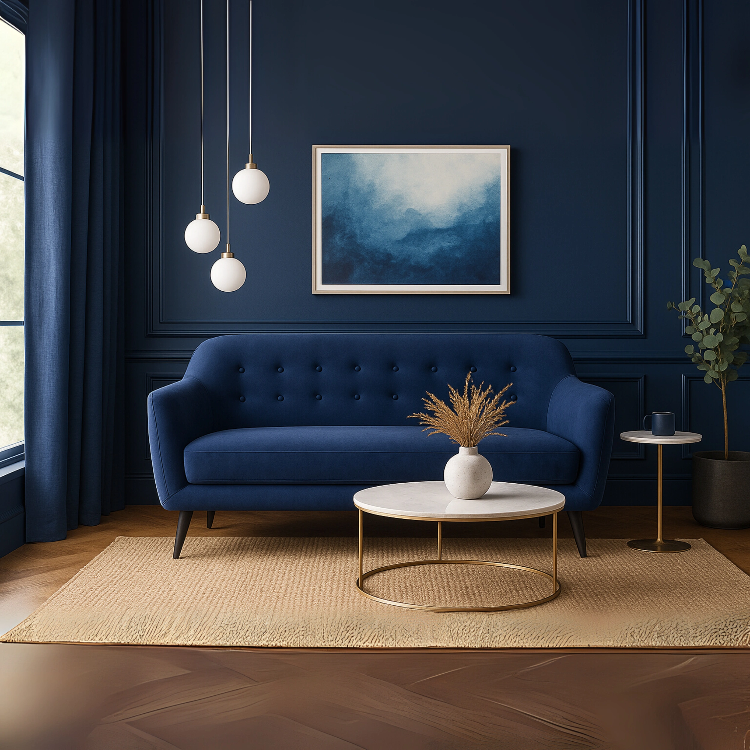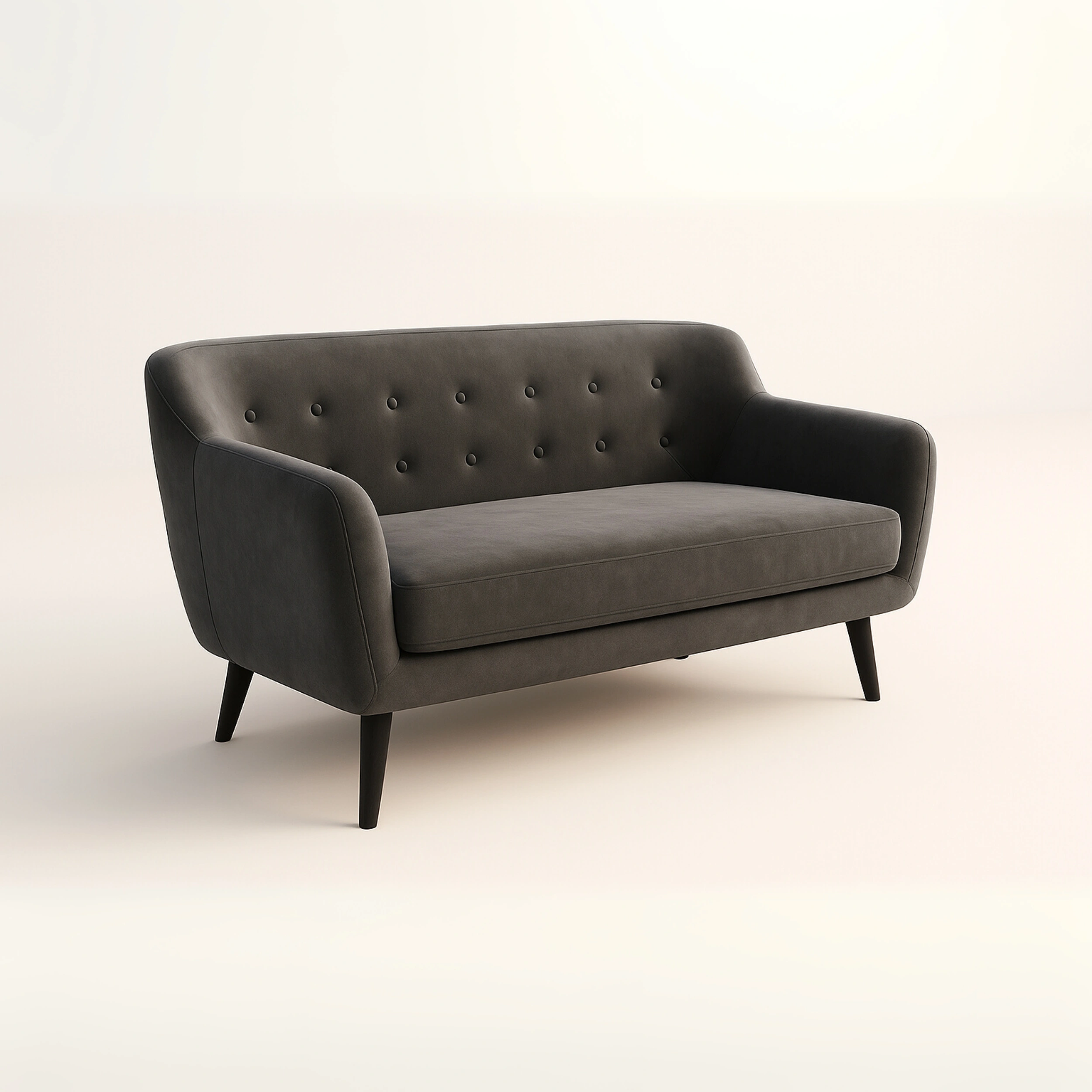 This elegant 3-seater sofa blends mid-century charm with contemporary minimalism. Featuring a gently curved backrest with classic button tufting, flared armrests, and sleek tapered legs, it offers both style and comfort. The rich navy blue upholstery adds a bold, sophisticated accent to any living space—ideal for apartments, reading corners, or office lounges.