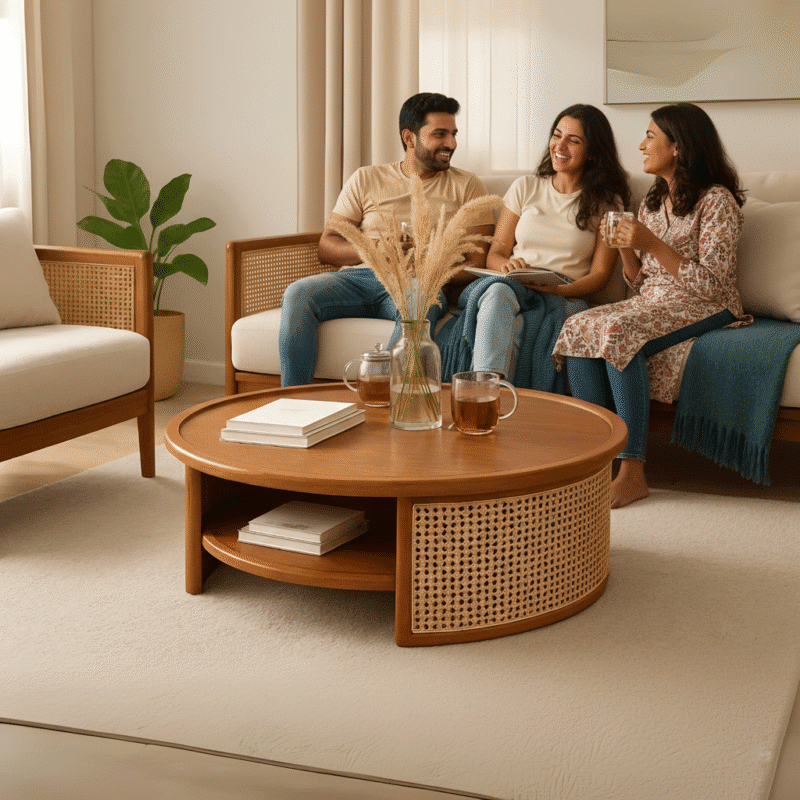 Willow Groove coffee table is the perfect spot for a stack of books, a casual dinner, or your tired feet. Made from solid Sheesham wood in a provincial teak finish, this piece can make any room feel warmer and more welcoming while serving up style. In a compact and contemporary design, it’ll easily adapt to your décor. It offers double the surface area and ample storage space thanks to its lower open shelf for quick access to accessories like remotes and your favourite books. Apart from form and function, it is durable with termite-resistant properties, ensuring it’s the perfect coffee table to anchor your living space