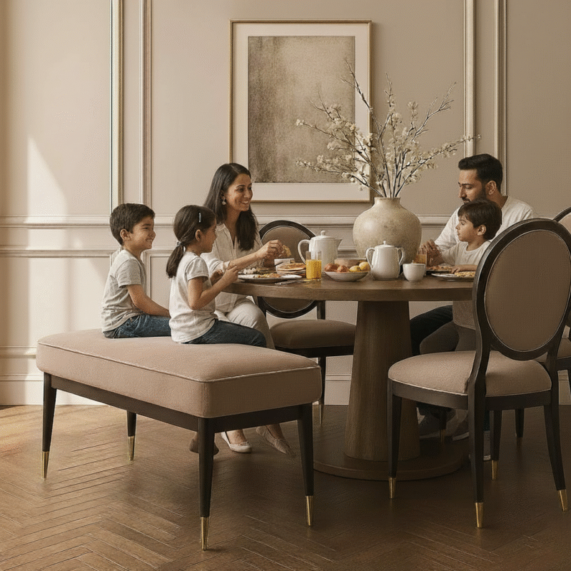 Legs: Solid wood (likely sheesham or mango wood) in a dark walnut finish