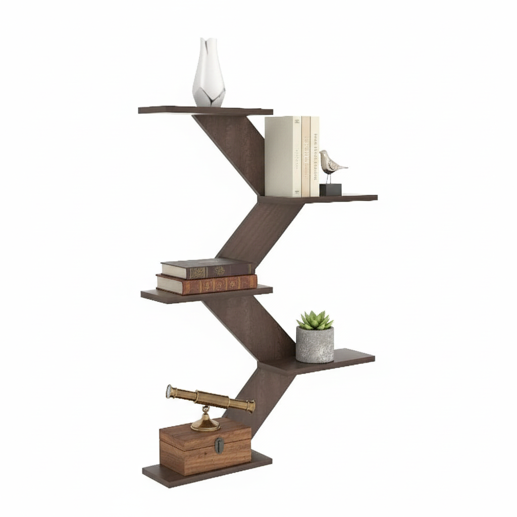 The Zivo Zag Shelf is a bold, modern wall-mounted shelving unit designed to make a striking visual statement. Featuring a distinctive zig-zag profile with staggered display platforms, it blends sculptural form with everyday functionality. The dynamic vertical layout creates natural separation between shelves, making it ideal for showcasing books, décor accents, plants, and collectibles while keeping the wall visually engaging.